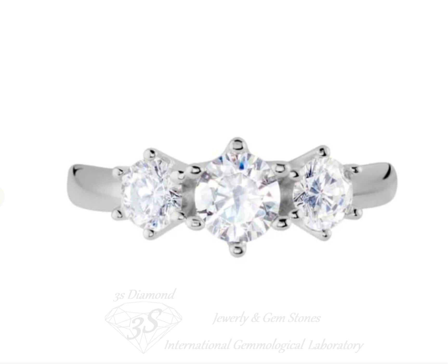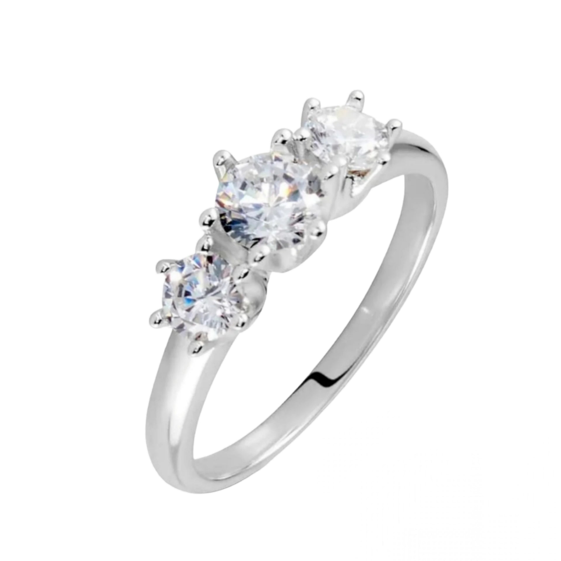 Anello modello trilogy, incastona tre diamanti di taglio rotondo su montatura a quattro griffe, proposto nella foto in oro bianco 18 kt. Il nostro trilogy è di uno dei modelli più romantici da regalare alla donna amata, sia per la sua bellezza e raffinatezza che colpisce al primo sguardo, sia per la simbologia che esso rappresenta.