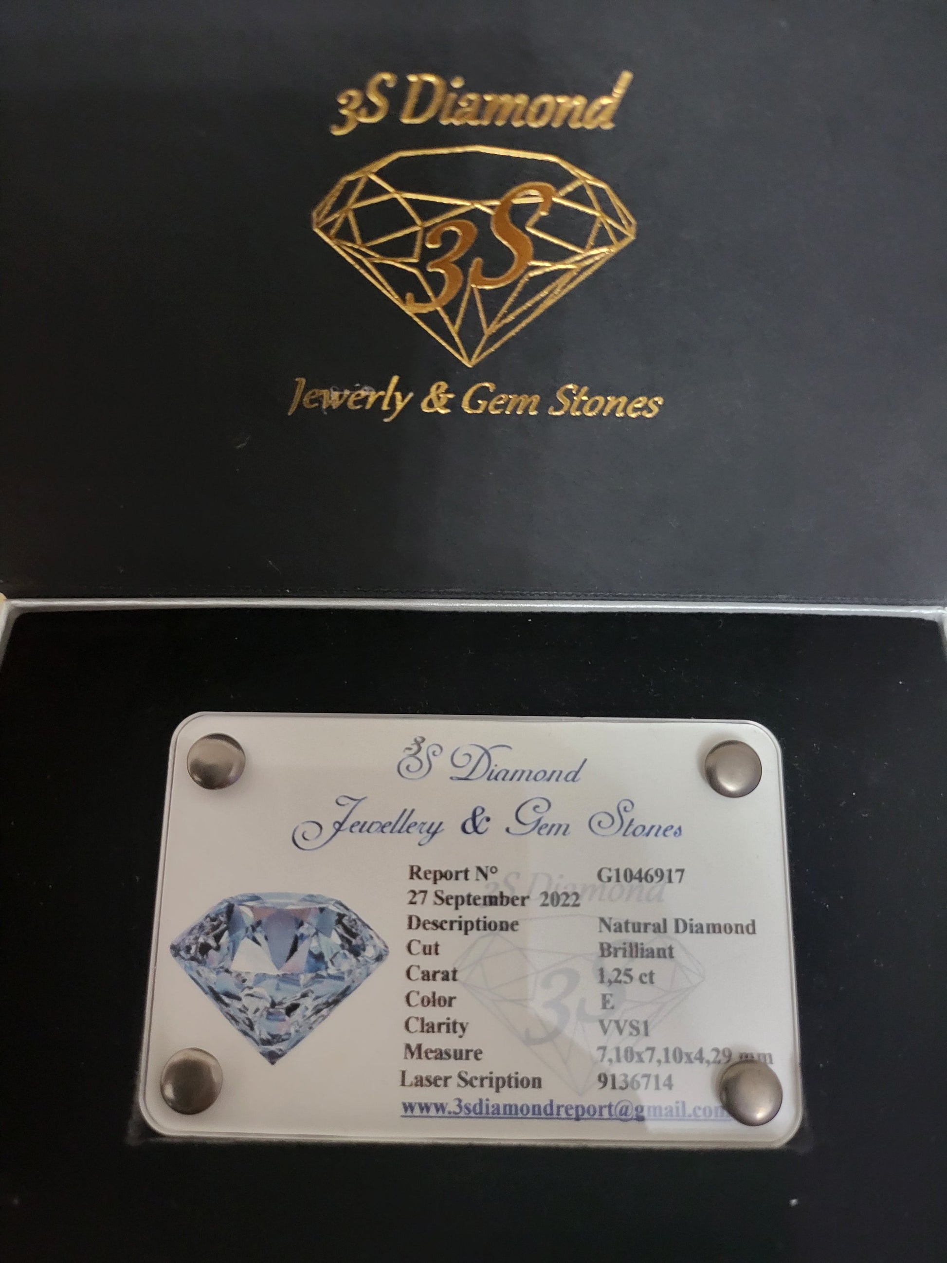 diamante naturale taglio brilliante 1,25 ct Colore E VVS1