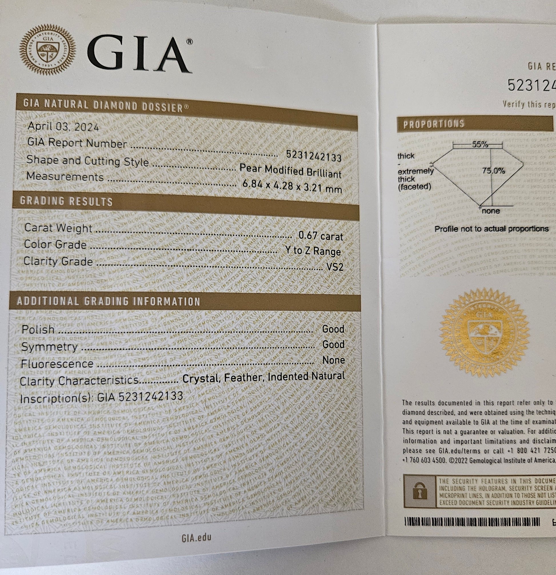 Diamante naturale pera certificato GIA 0.67ct