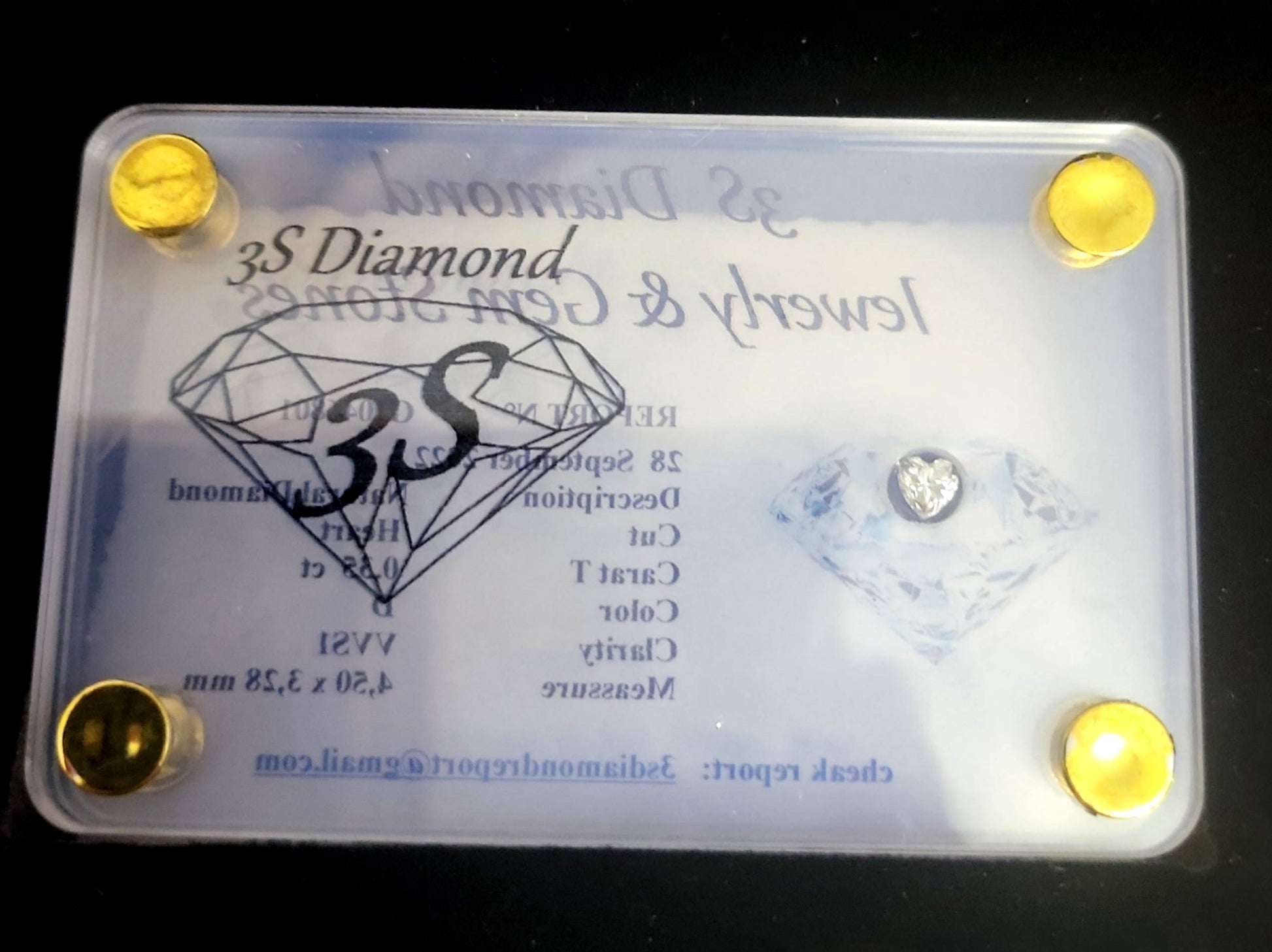diamante naturale taglio cuore 0,34 ct Colore D VVS1