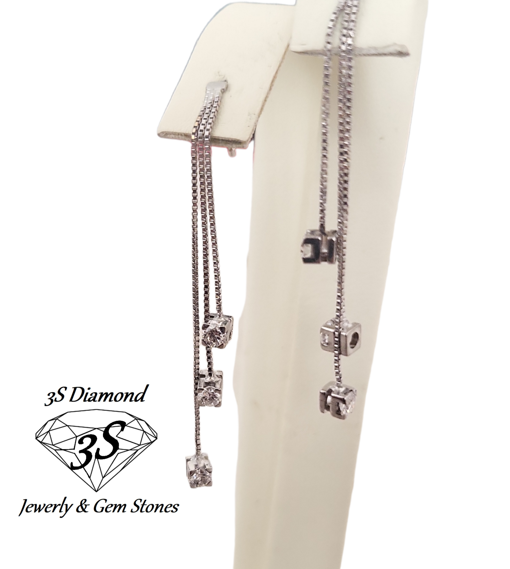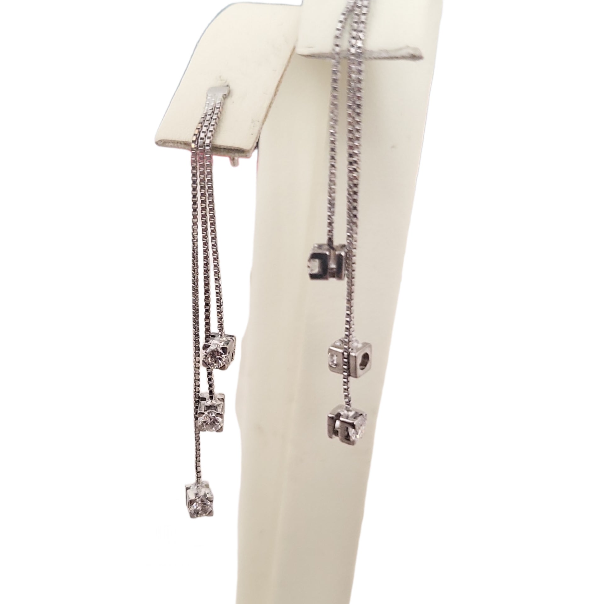 orecchini a striscie in oro bianco 18k e 6 diamanti naturale 0,60ct
