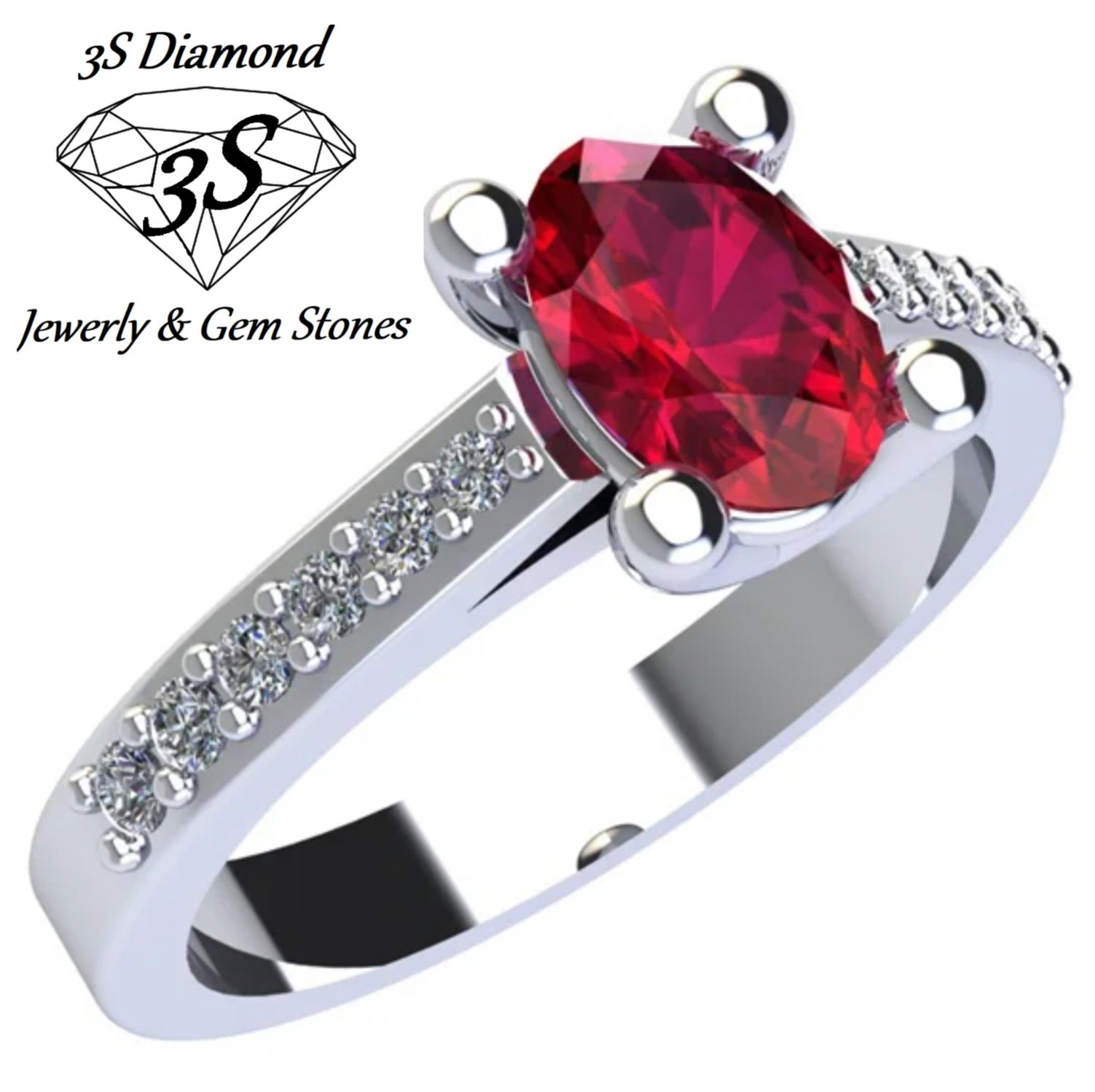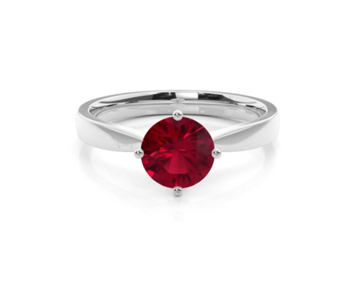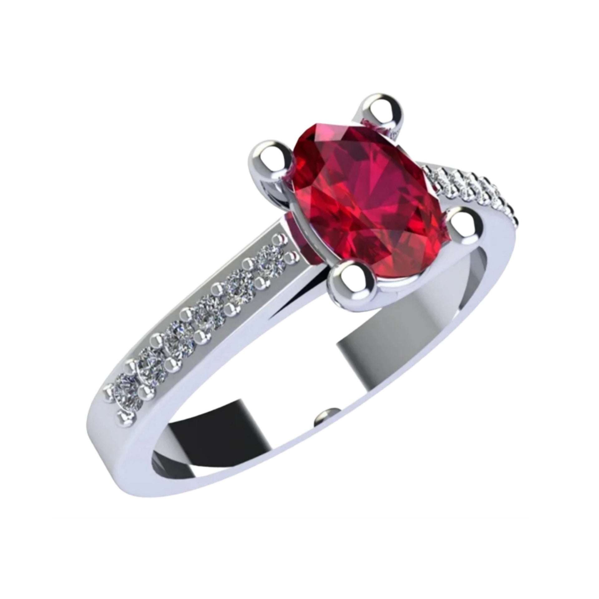 anello solitario in oro bianco 18k e 1 rubino naturale taglio ovale o brillante 2.00 ct