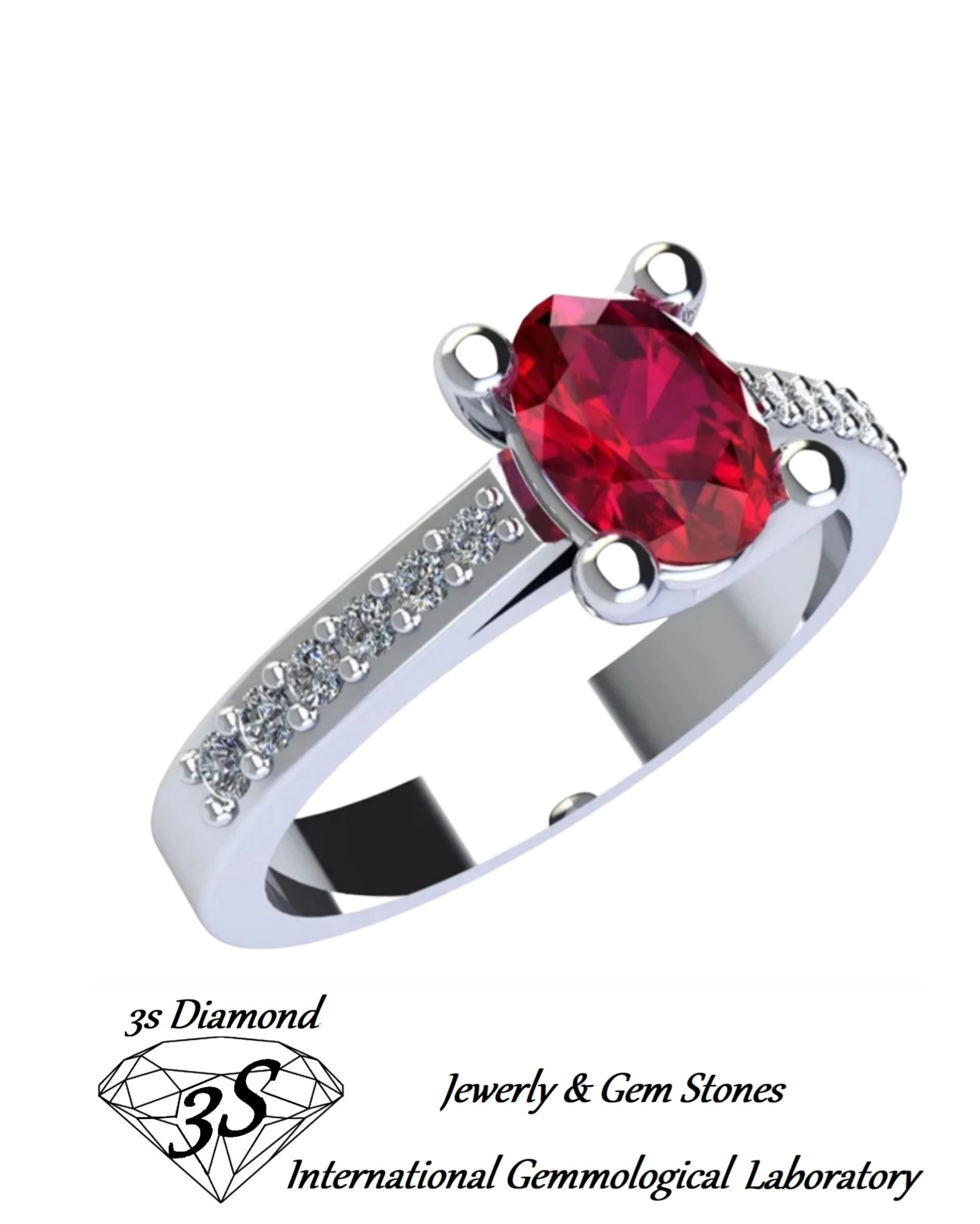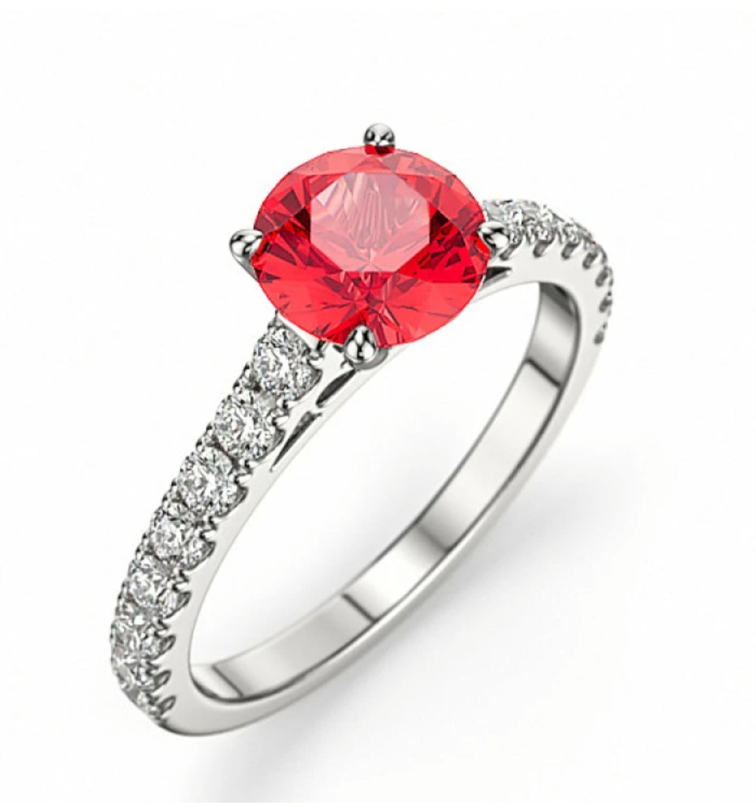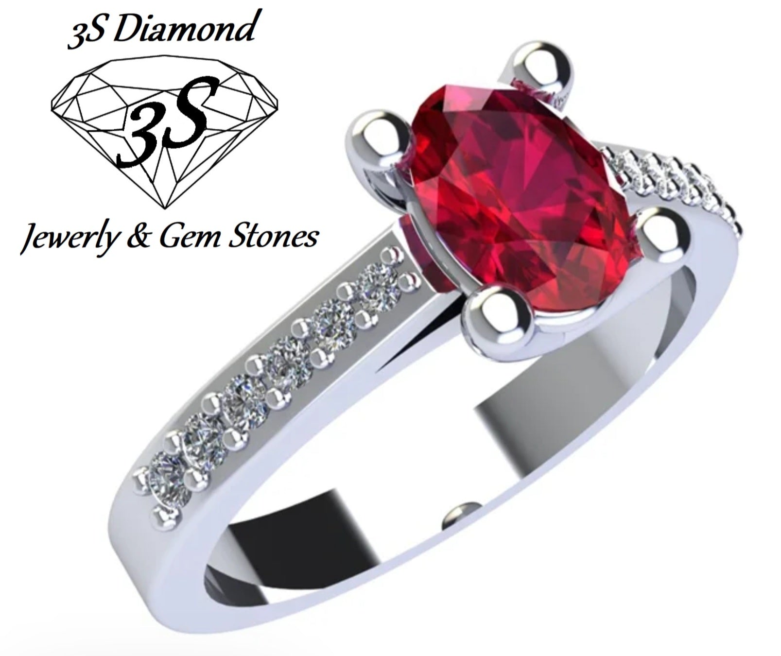 anello solitario in oro bianco 18k e 1 rubino naturale taglio ovale o brillante 2.00 ct