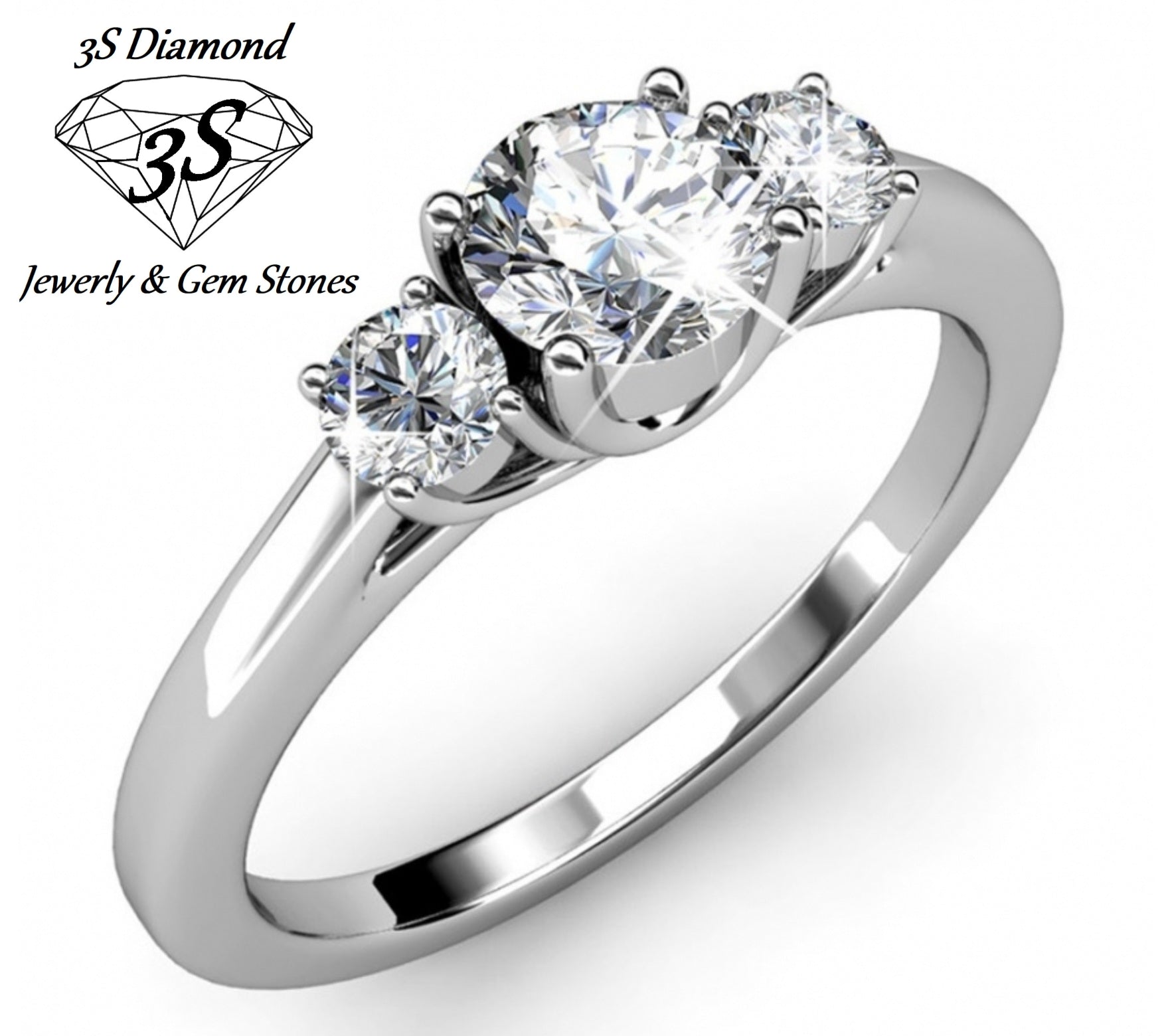 anello trilogy in oro bianco 18k con 3 diamanti naturali 0,90ct
