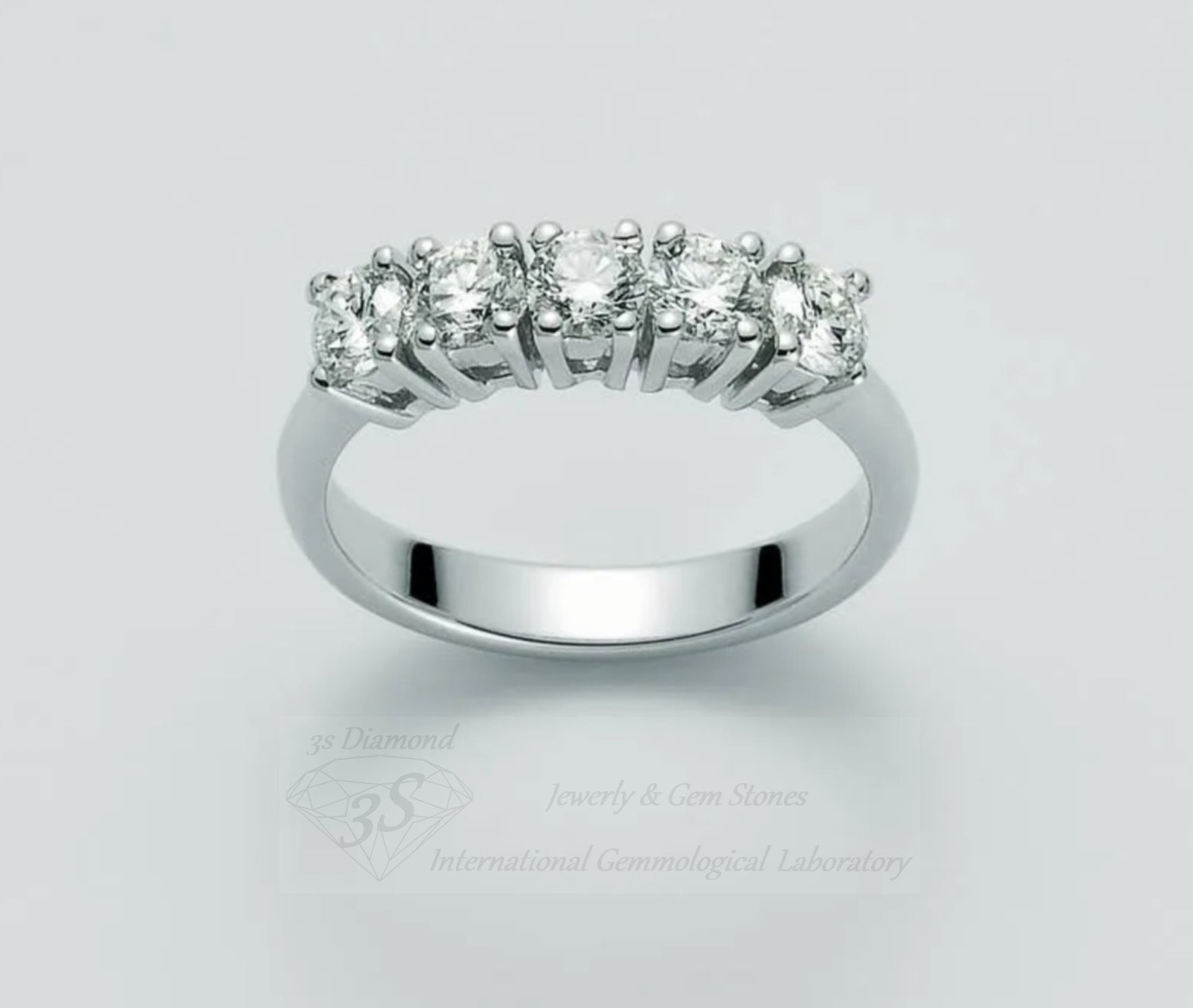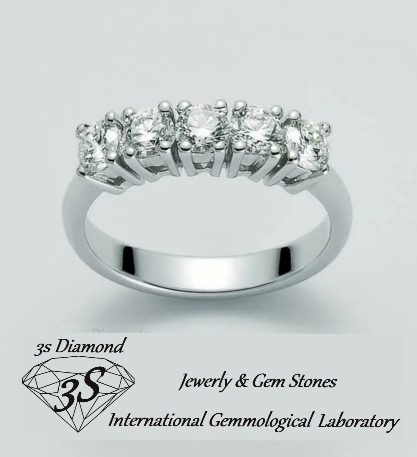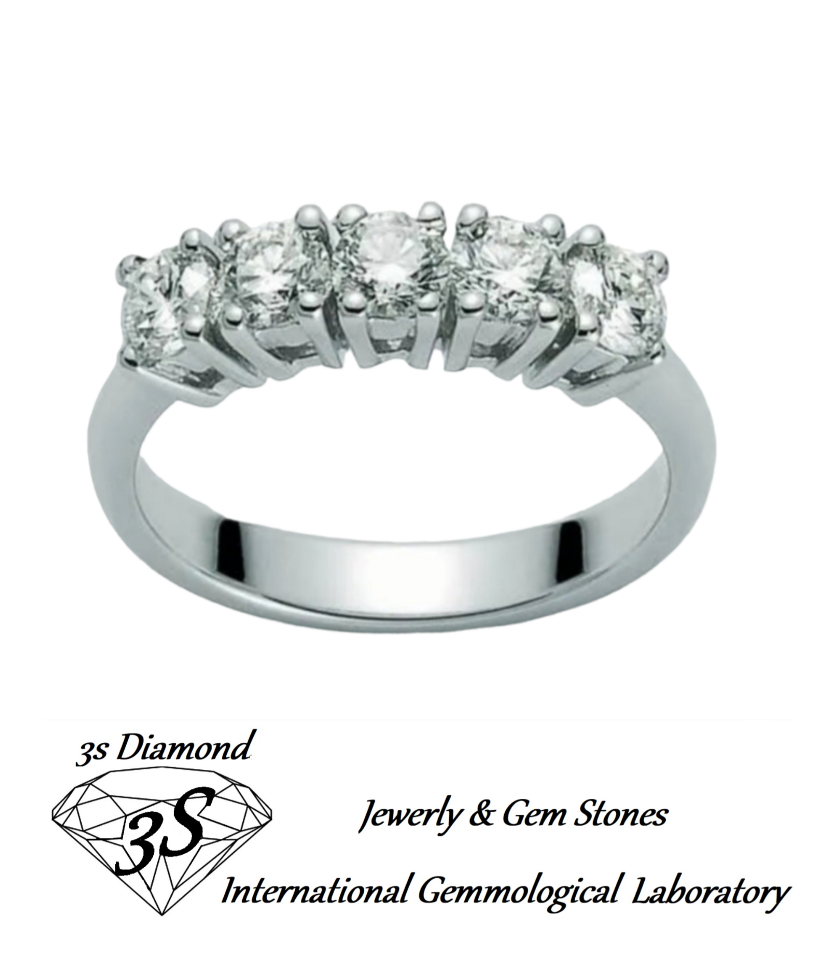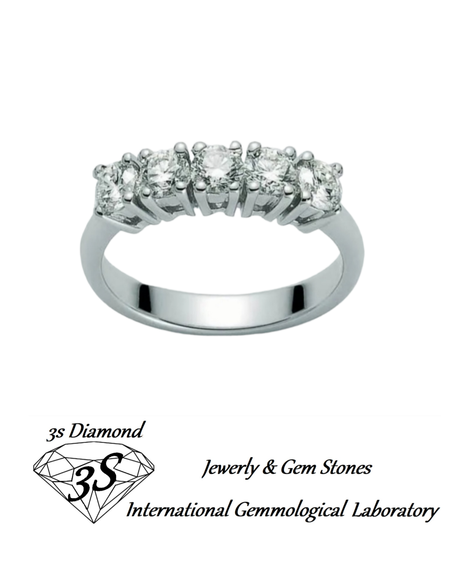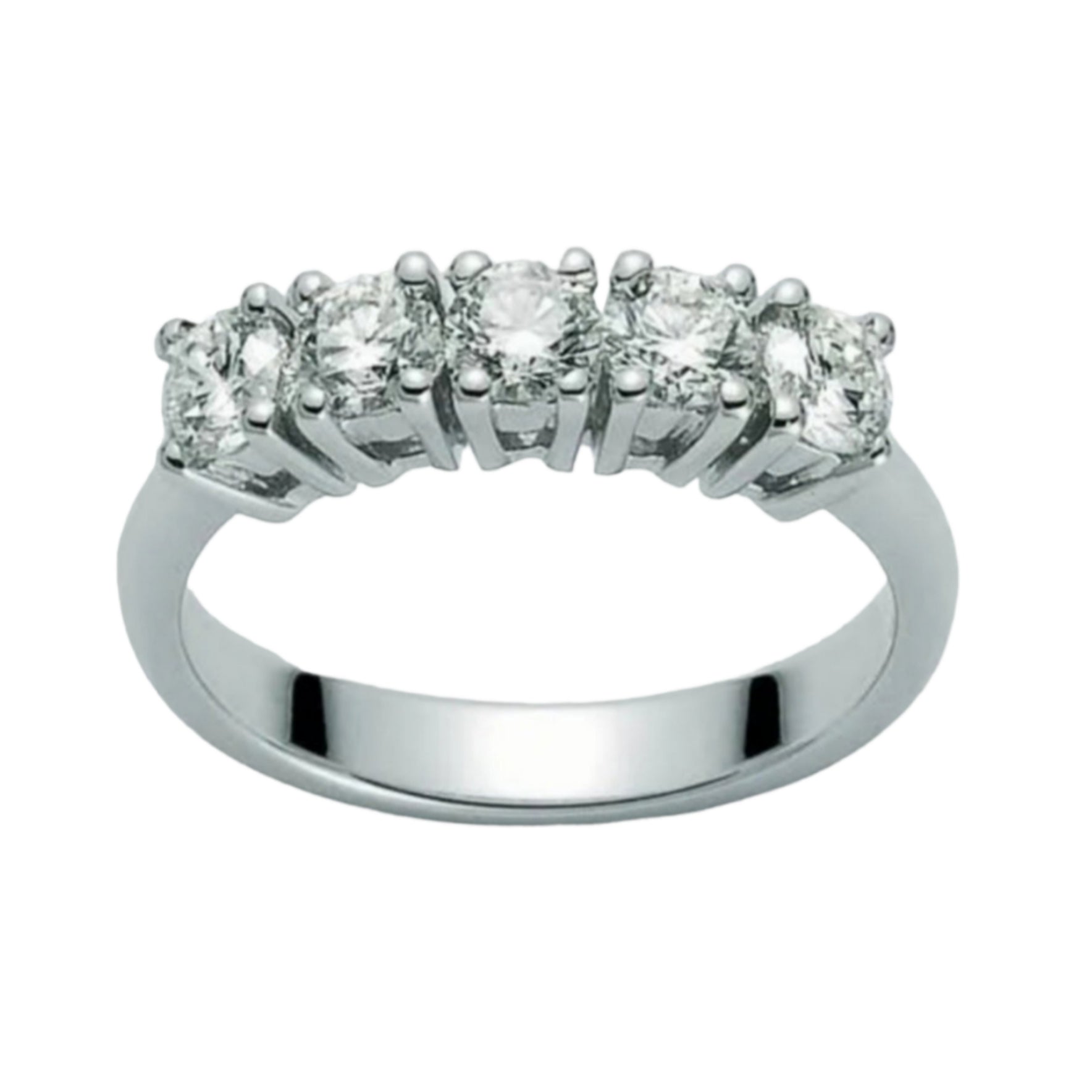 anello veretta a 5 pietre in oro bianco 18k e 5 diamanti naturali 1,00 ct