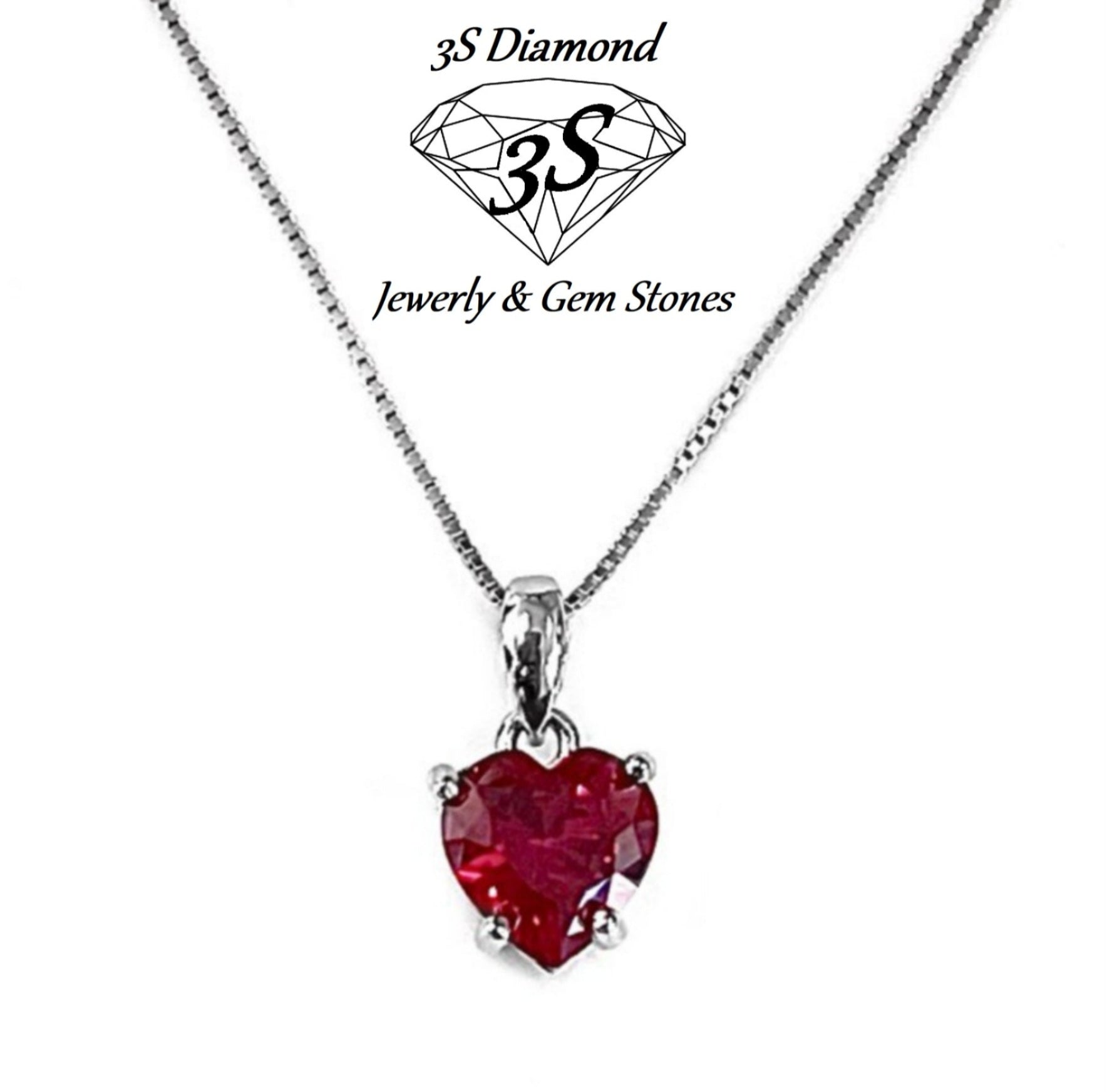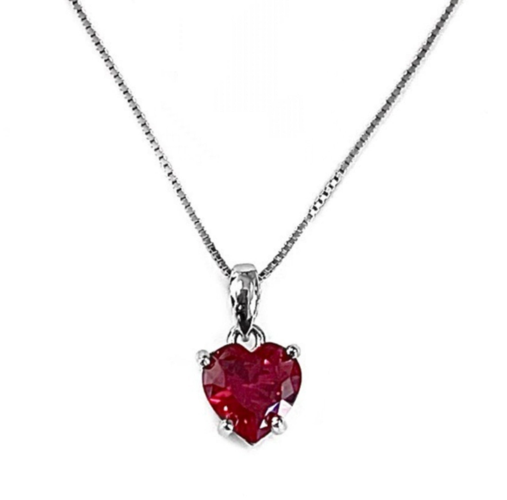 ciondolo punto luce in oro bianco 18k e rubino naturale taglio cuore 2,20ct