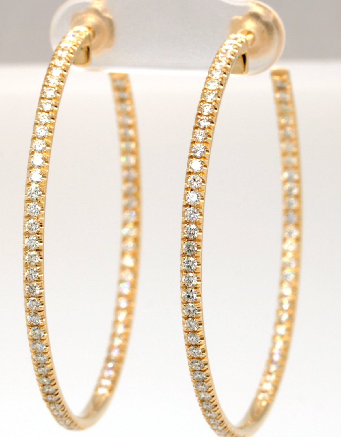 orecchini a cerchio in oro giallo con diamanti naturali per un totale di 2,00 ct