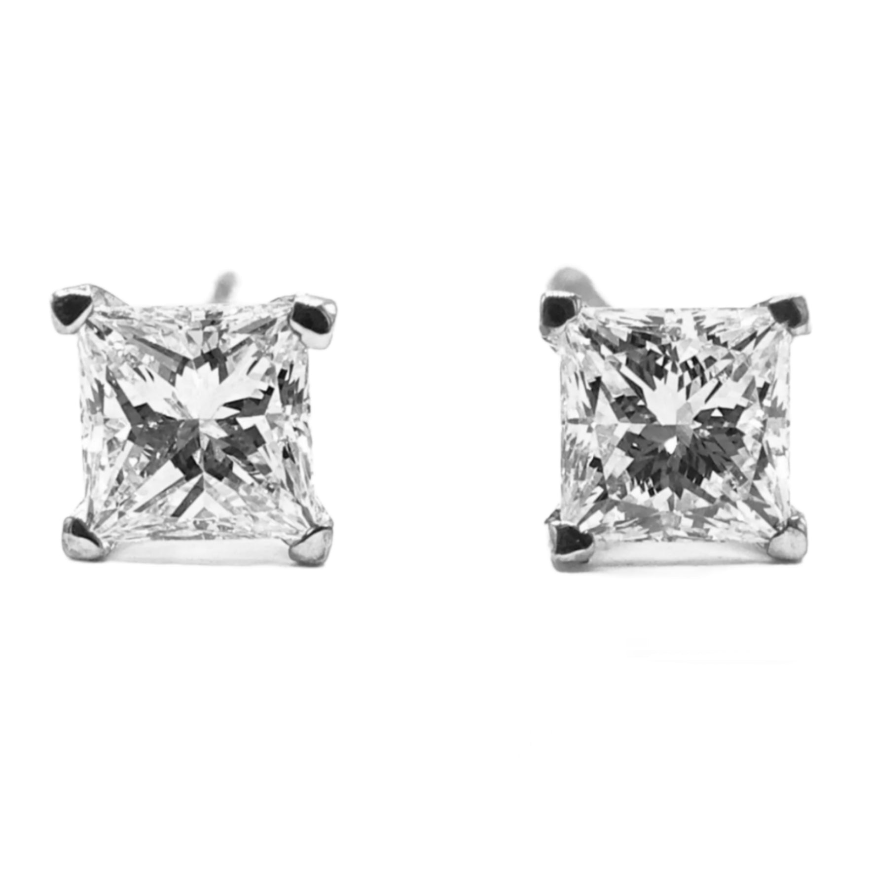 orecchini punto luce in oro bianco 18k e 2 diamanti naturali taglio princess 0,70 ct