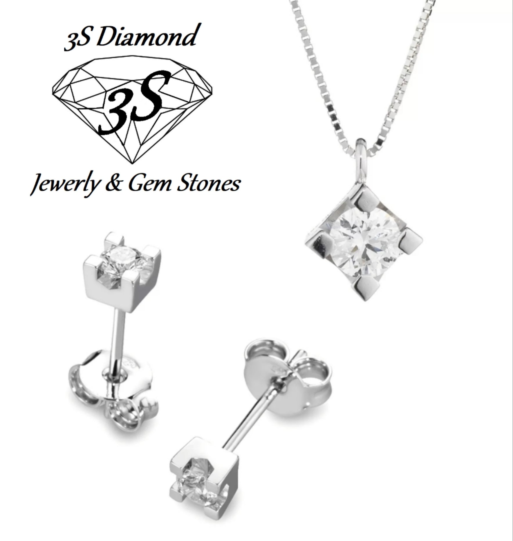 set completo ciondolo e orecchini punto luce oro 18k 750 e diamanti naturali 0,75 ct color E VVS1