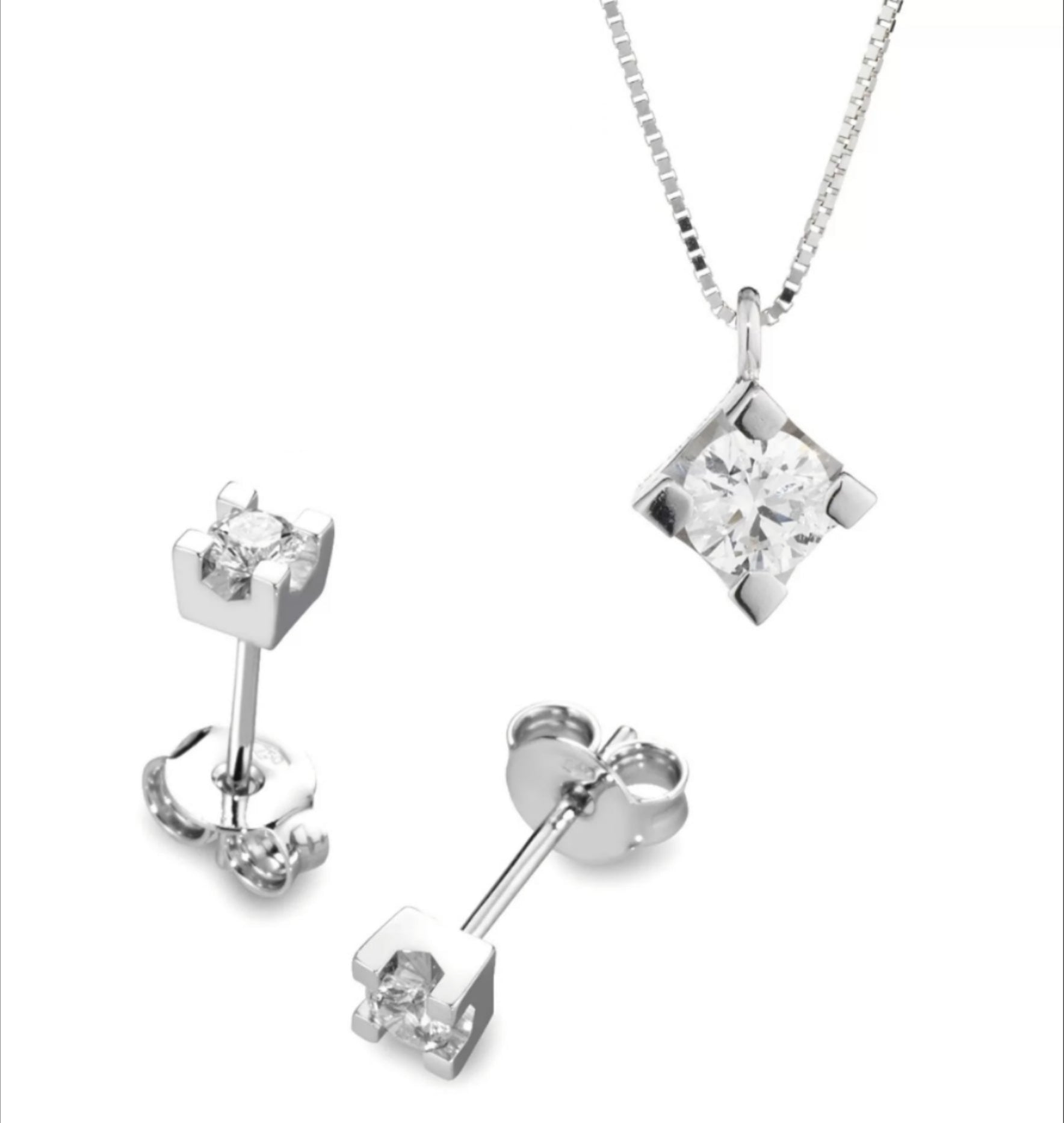 set completo ciondolo e orecchini punto luce oro 18k 750 e diamanti naturali 1,35 ct D VVS1