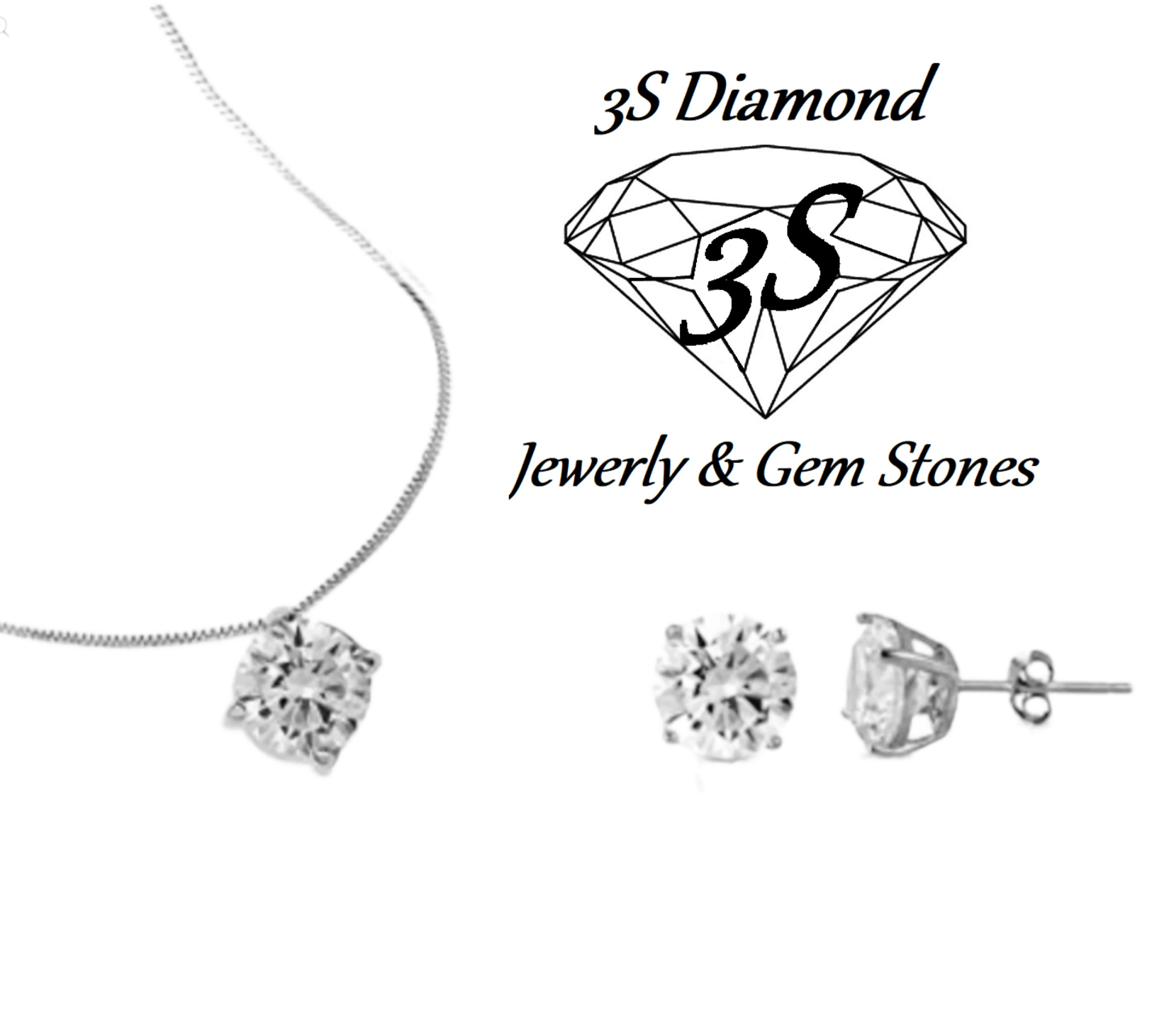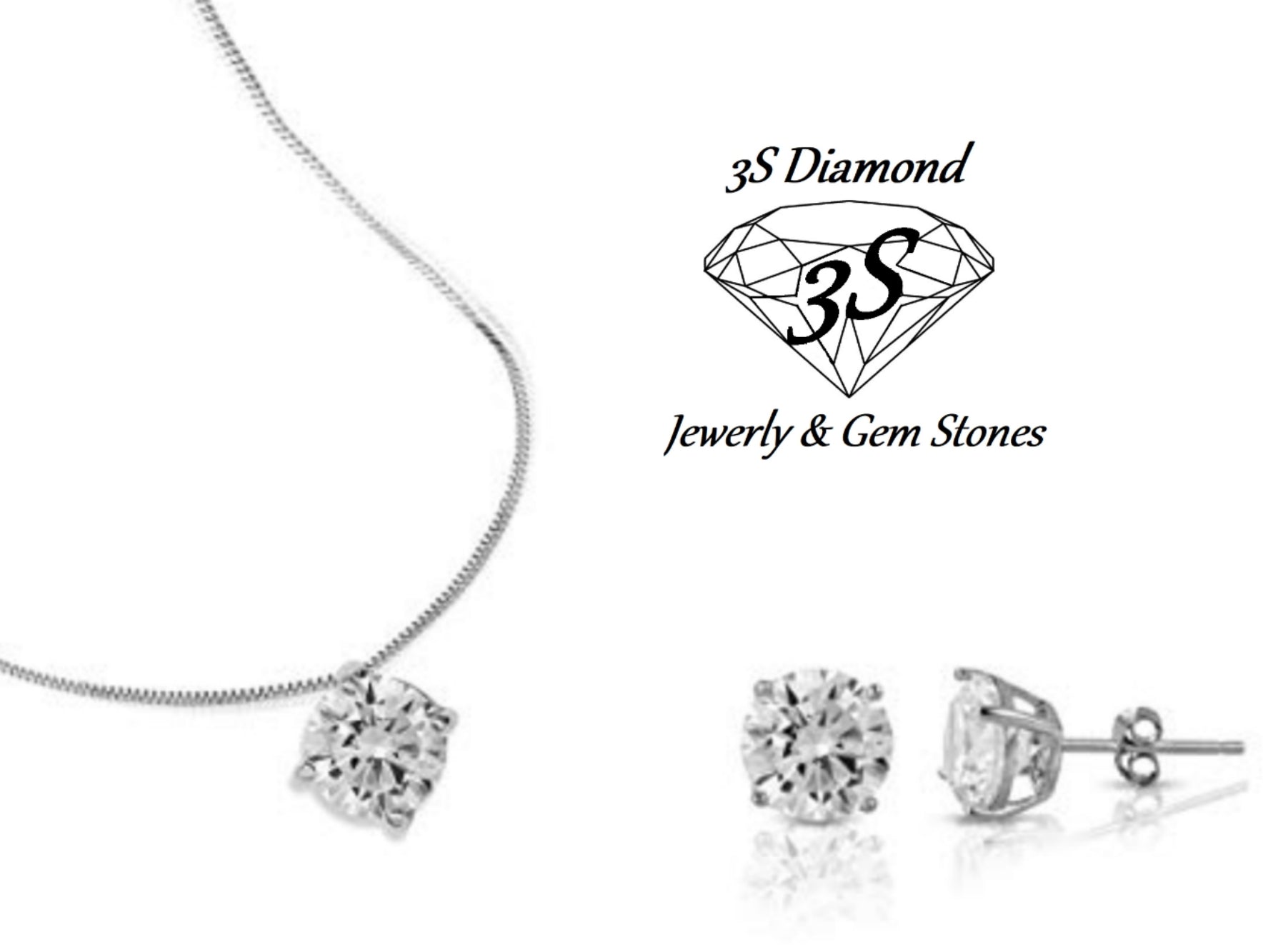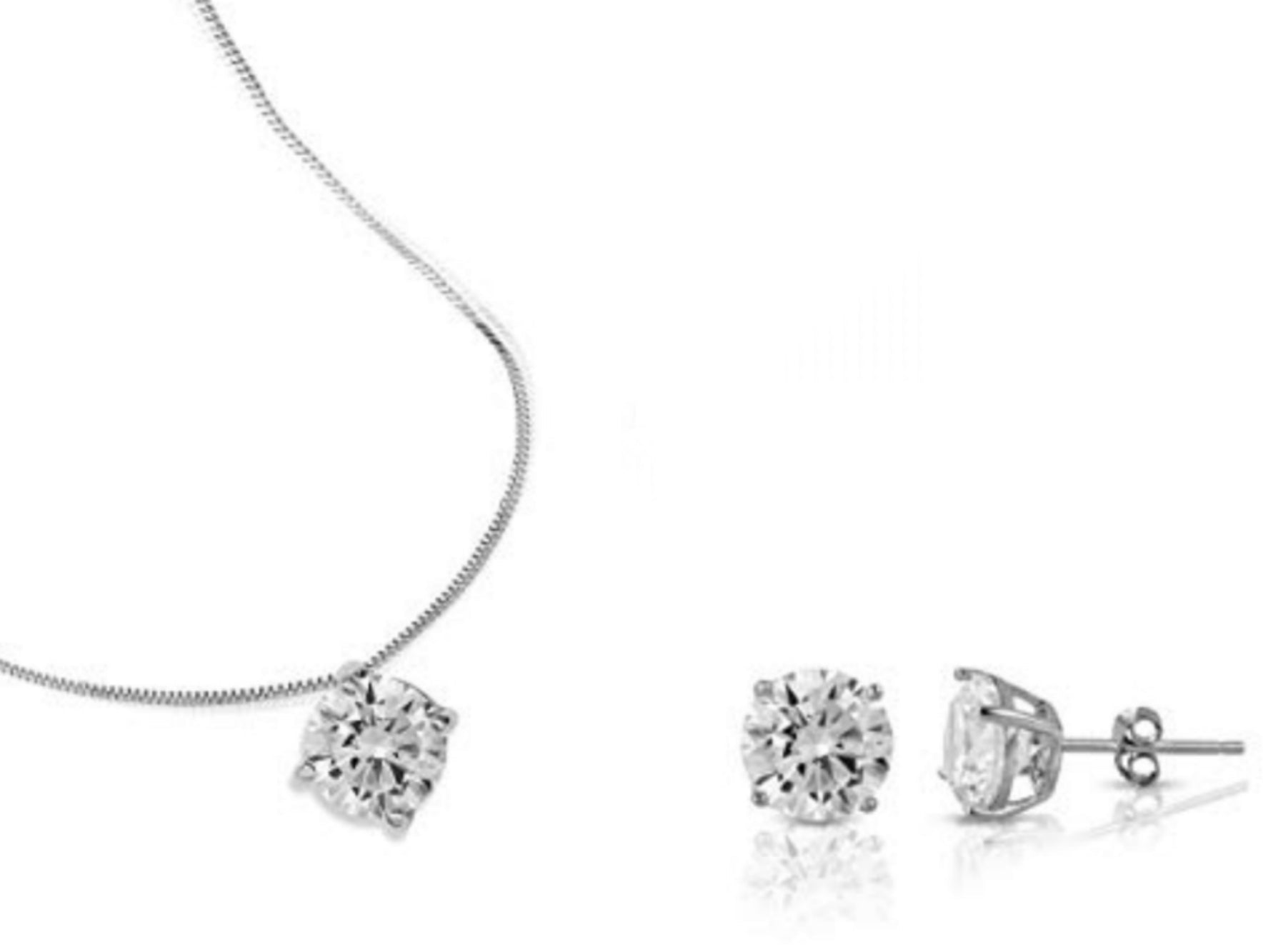 set completo in oro bianco 18k con ciondolo e orecchini punto luce e 3 diamanti naturali 1,35 ct color E VVS1