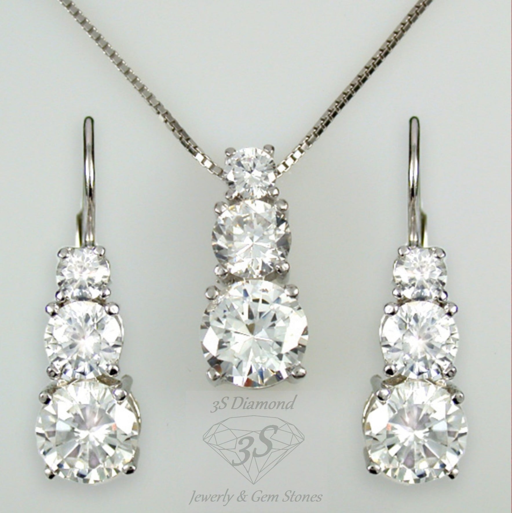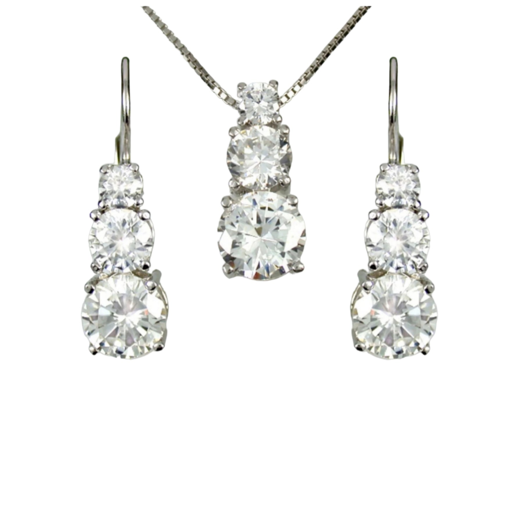 set completo trilogy ciondolo e orecchini punto luce in oro bianco 18k 750 e 9 diamanti naturali 2,10 ct E F