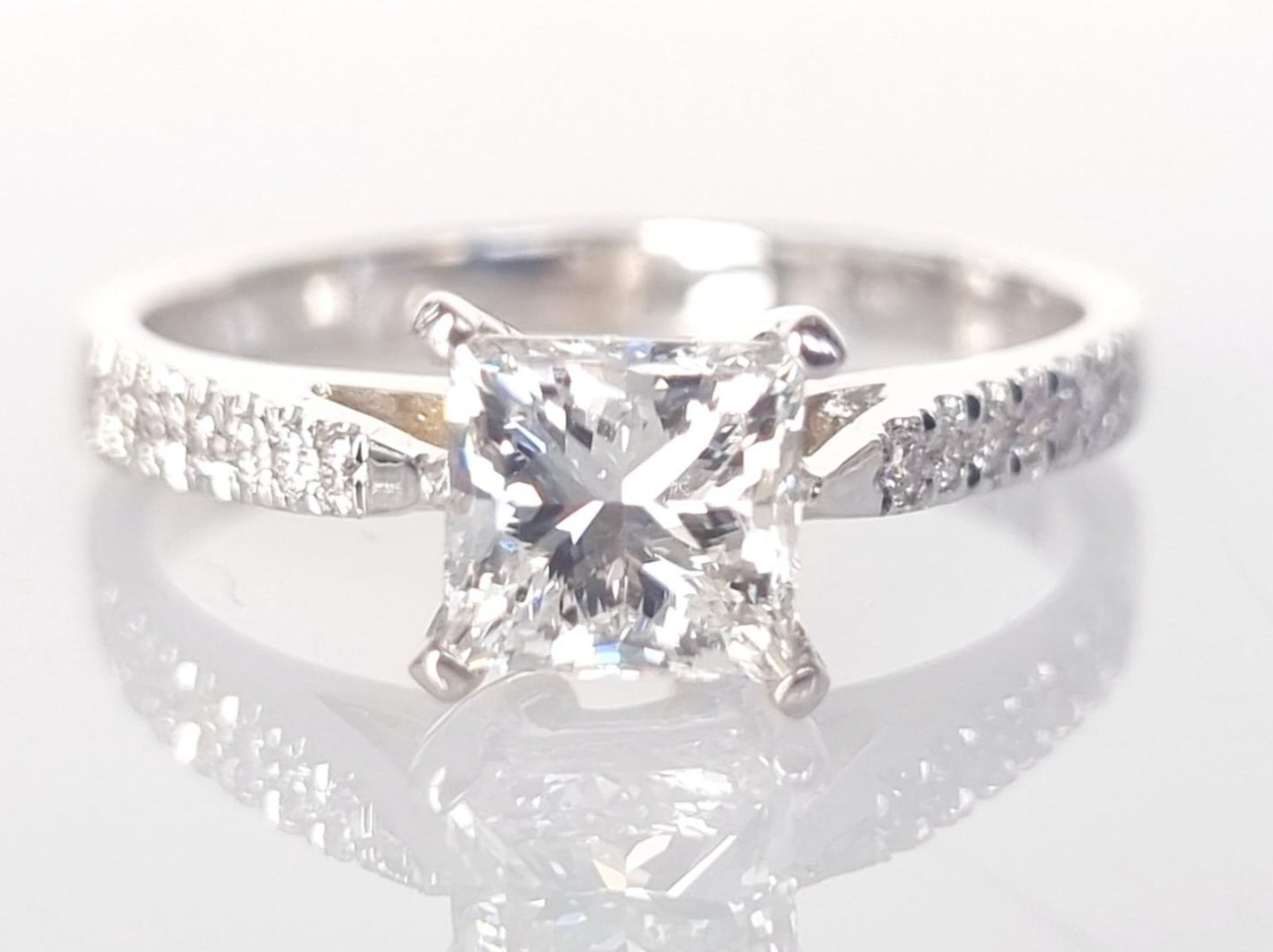 Anello fidanzamento in oro bianco 18k e diamanti naturali certificato igi 1.25ct