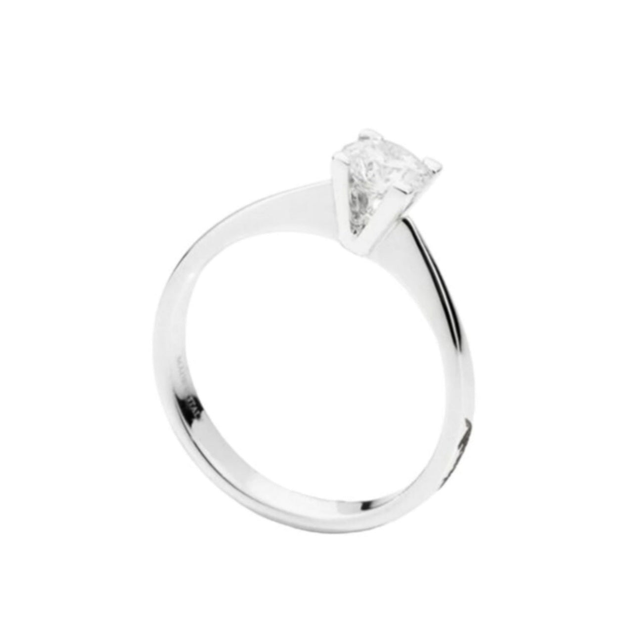 Anello solitario con diamante modello Cartier, la montatura presenta una pietra rotonda centrale incastonata a griffe. La montatura a quattro griffe è liberamente ispirata al modello solitario della Maison Cartier.