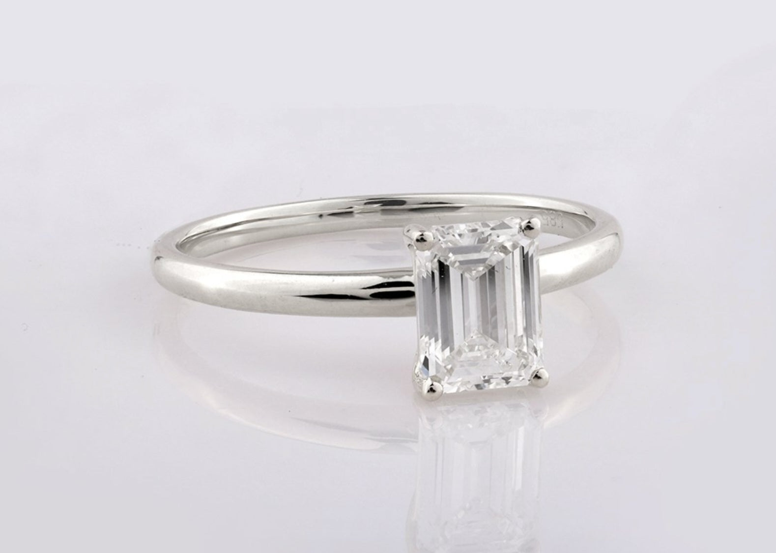 Anello solitario in oro bianco 18k e diamante naturale taglio smeraldo 1.20ct