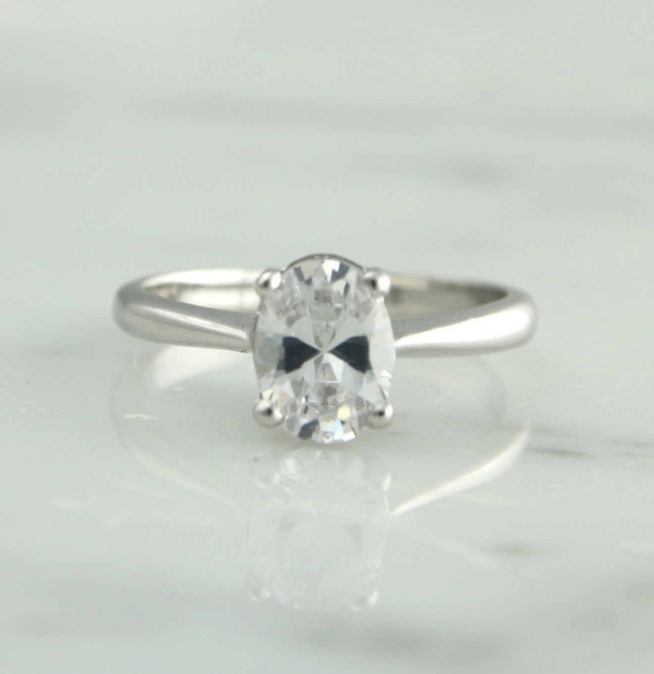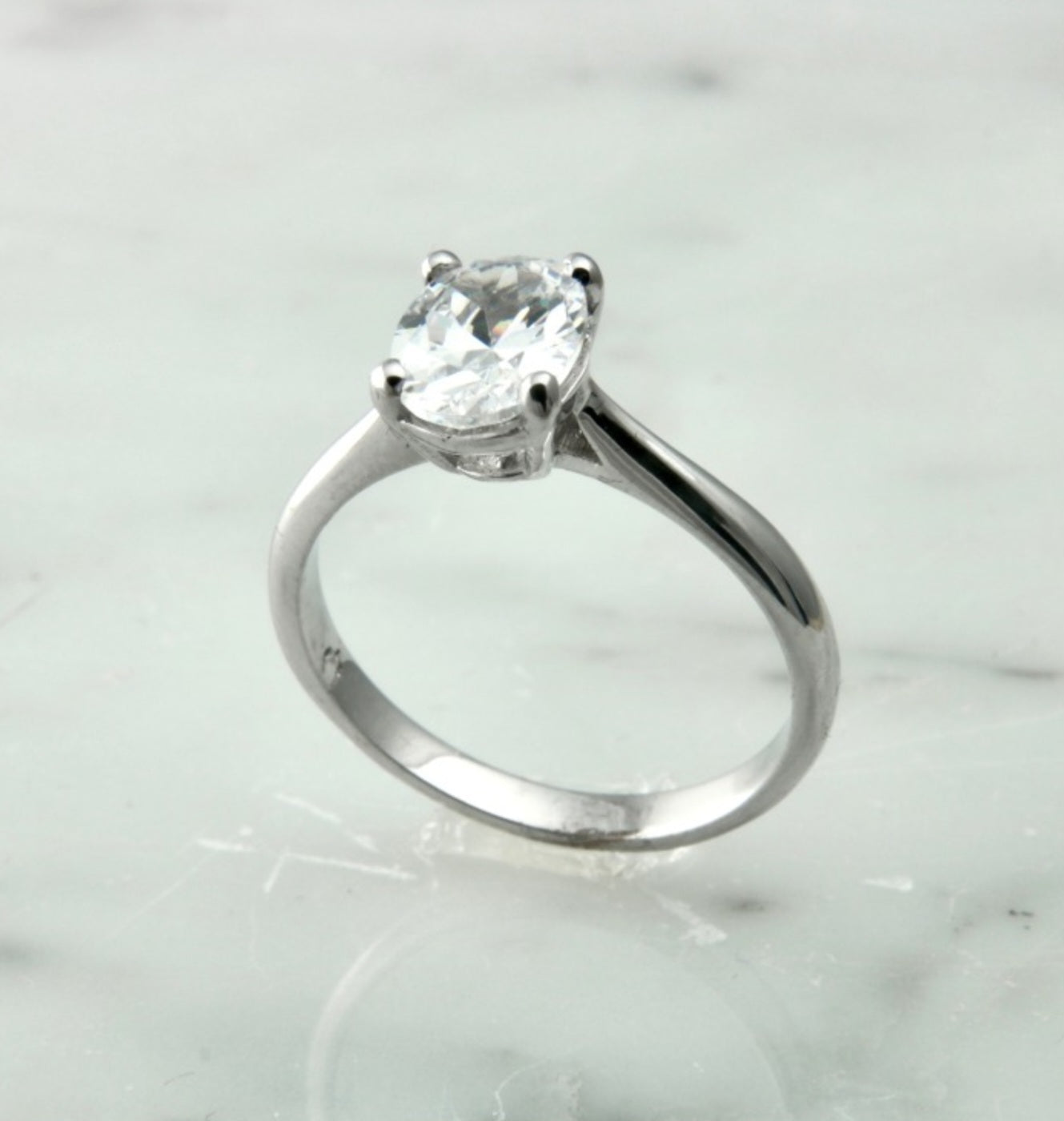 anello solitario ovale in oro bianco 18k e diamante naturale centrale 0,55 ct