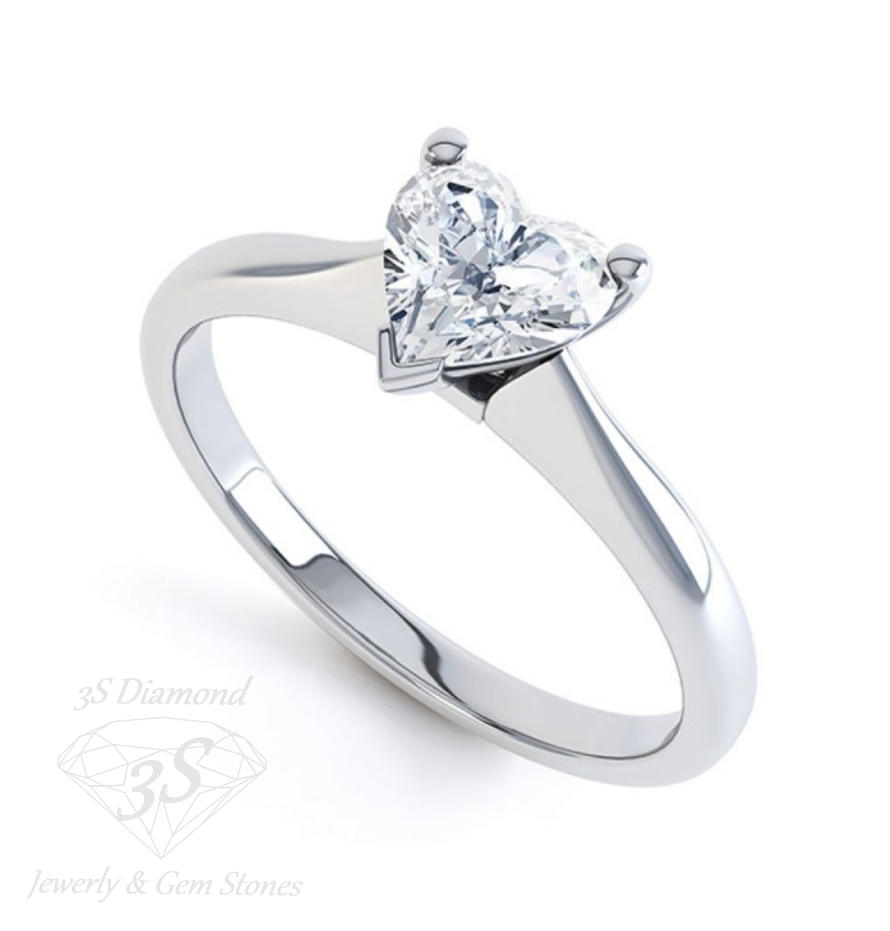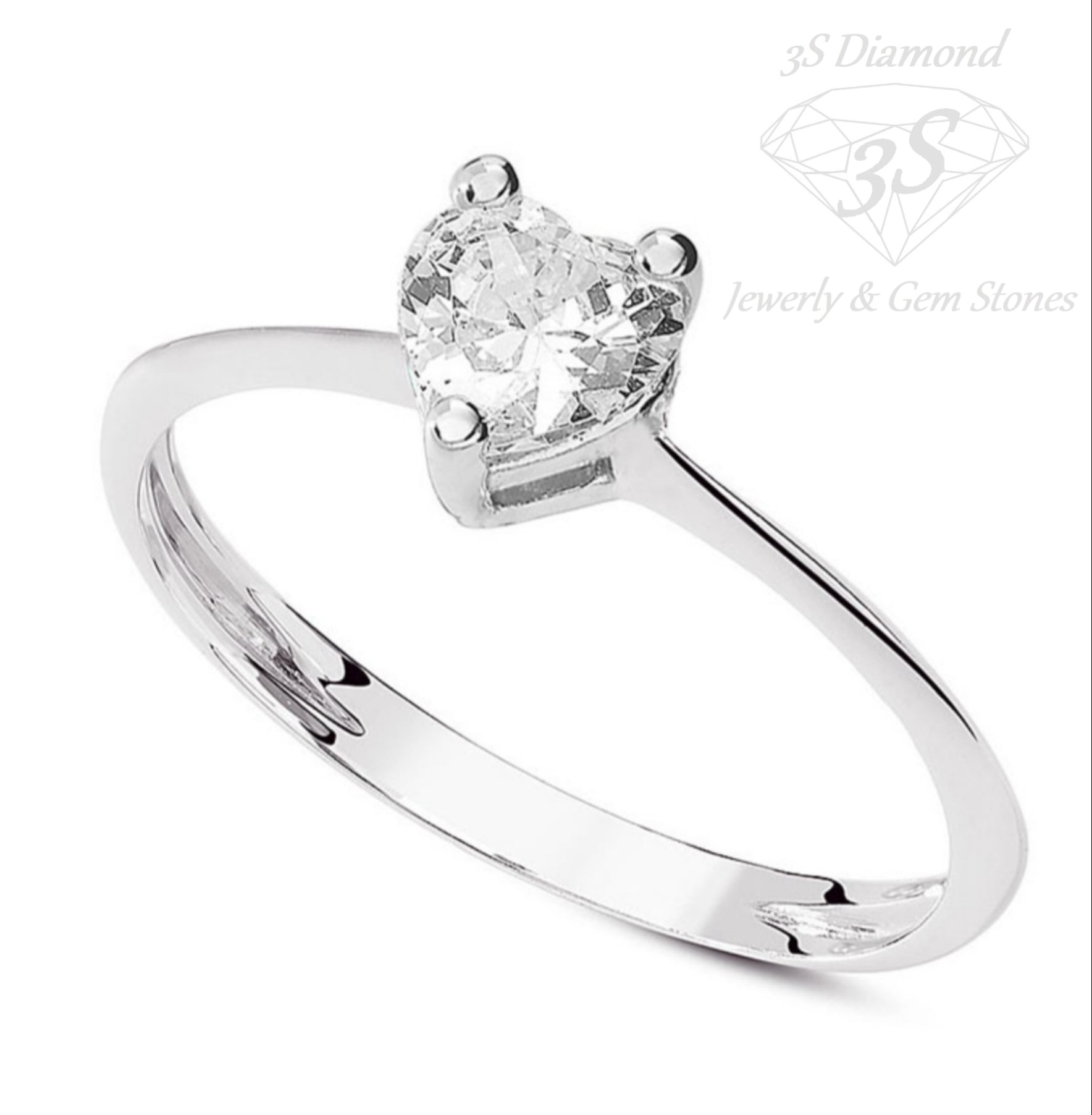 anello solitario in oro bianco 18k e diamante naturale taglio cuore centrale 0,30 ct
