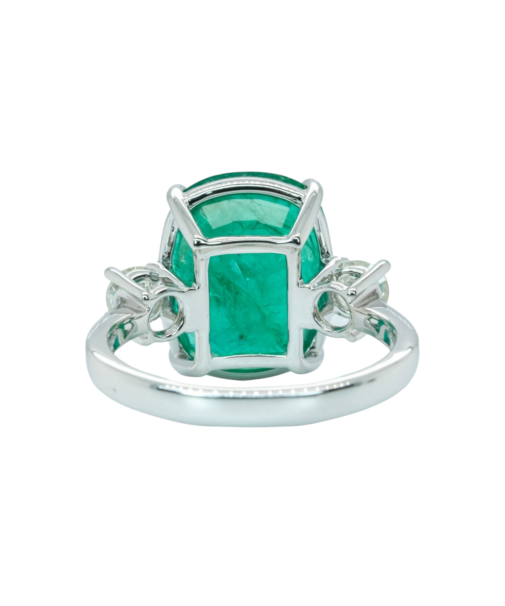 Anello trology in oro bianco e smeraldo 7.30 ct e diamanti naturali 0.50ct