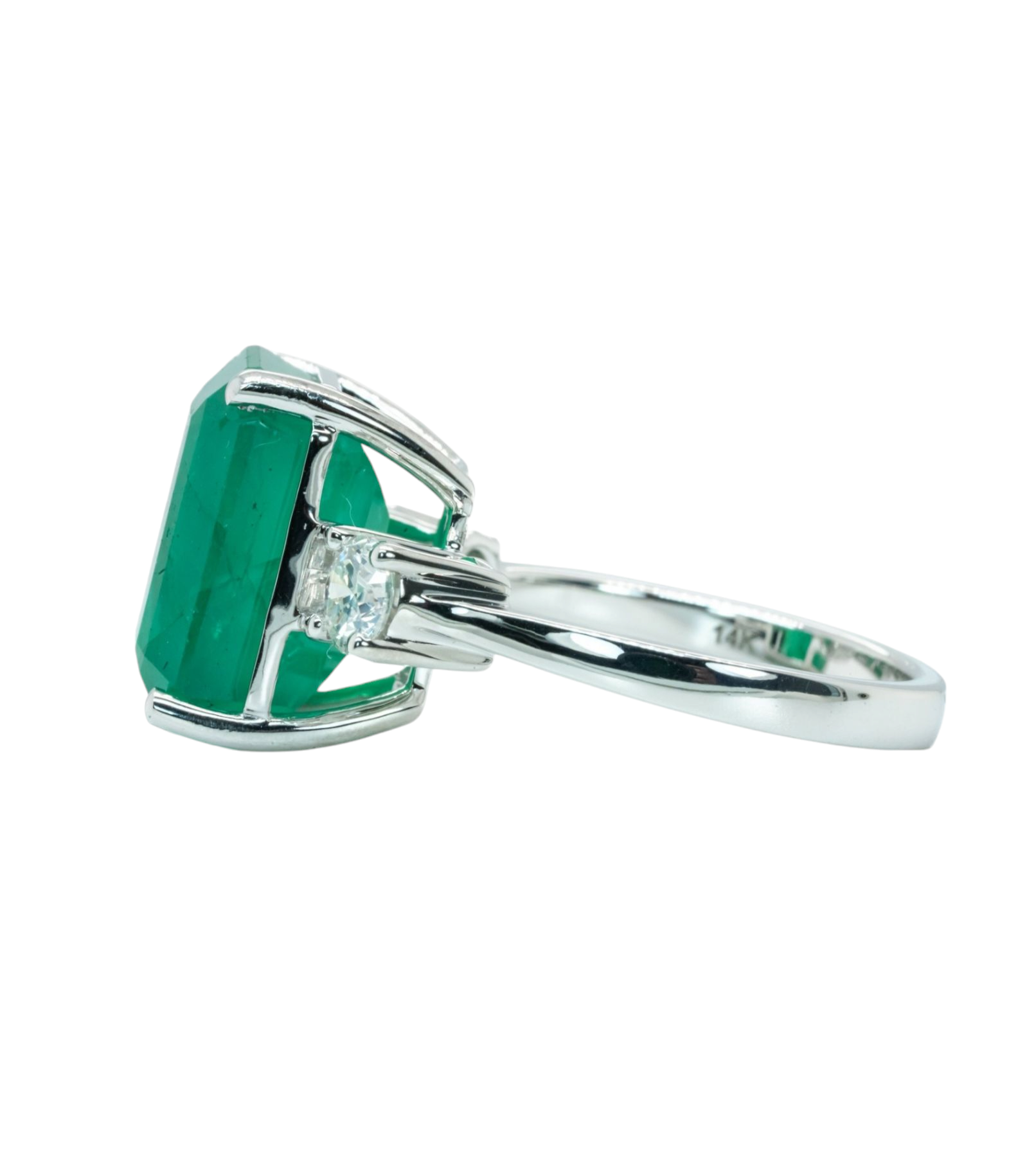 Anello trology in oro bianco e smeraldo 8.60 ct e diamanti naturali 0.70ct