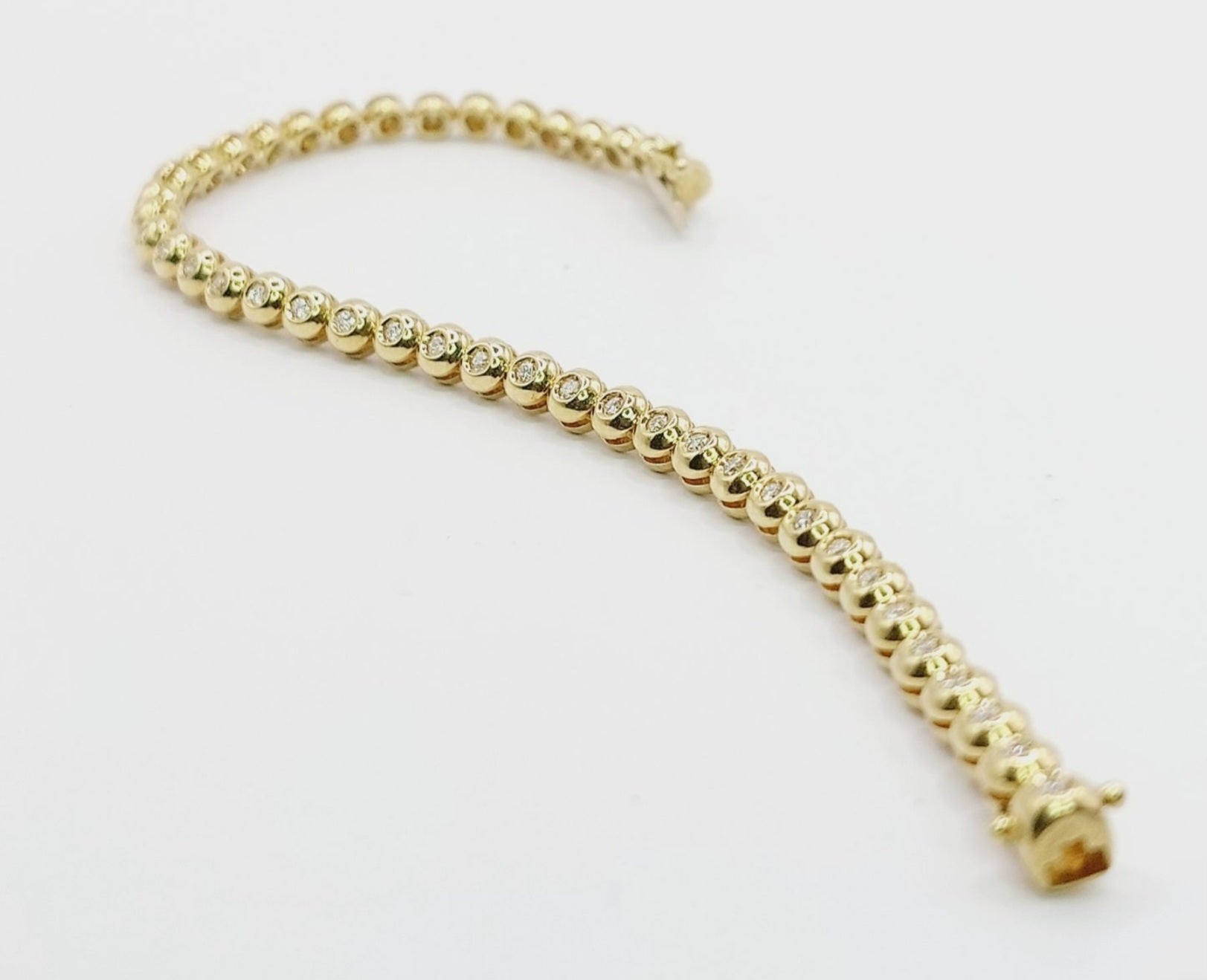 Bracciale tennis montatura a filo, i diamanti si rincorrono a formare una splendida linea di luce.