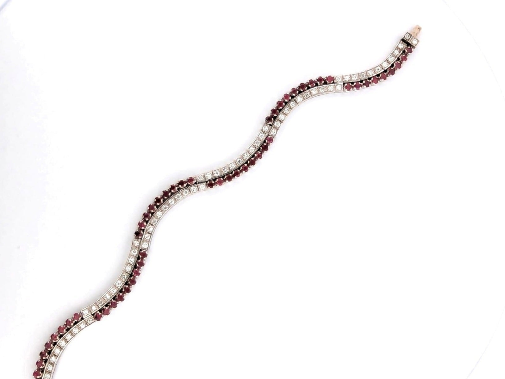 Bracciale tennis in oro bianco e rubino naturali e diamanti naturali 9.00ct