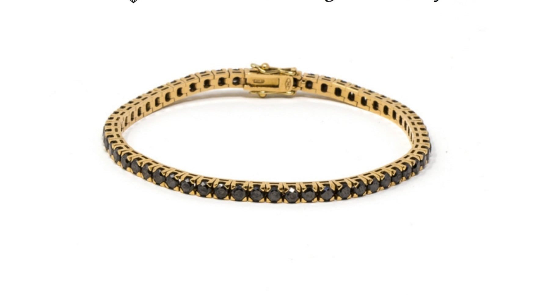 bracciale tennis in oro giallo 18k e diamanti naturali neri 4,00ct