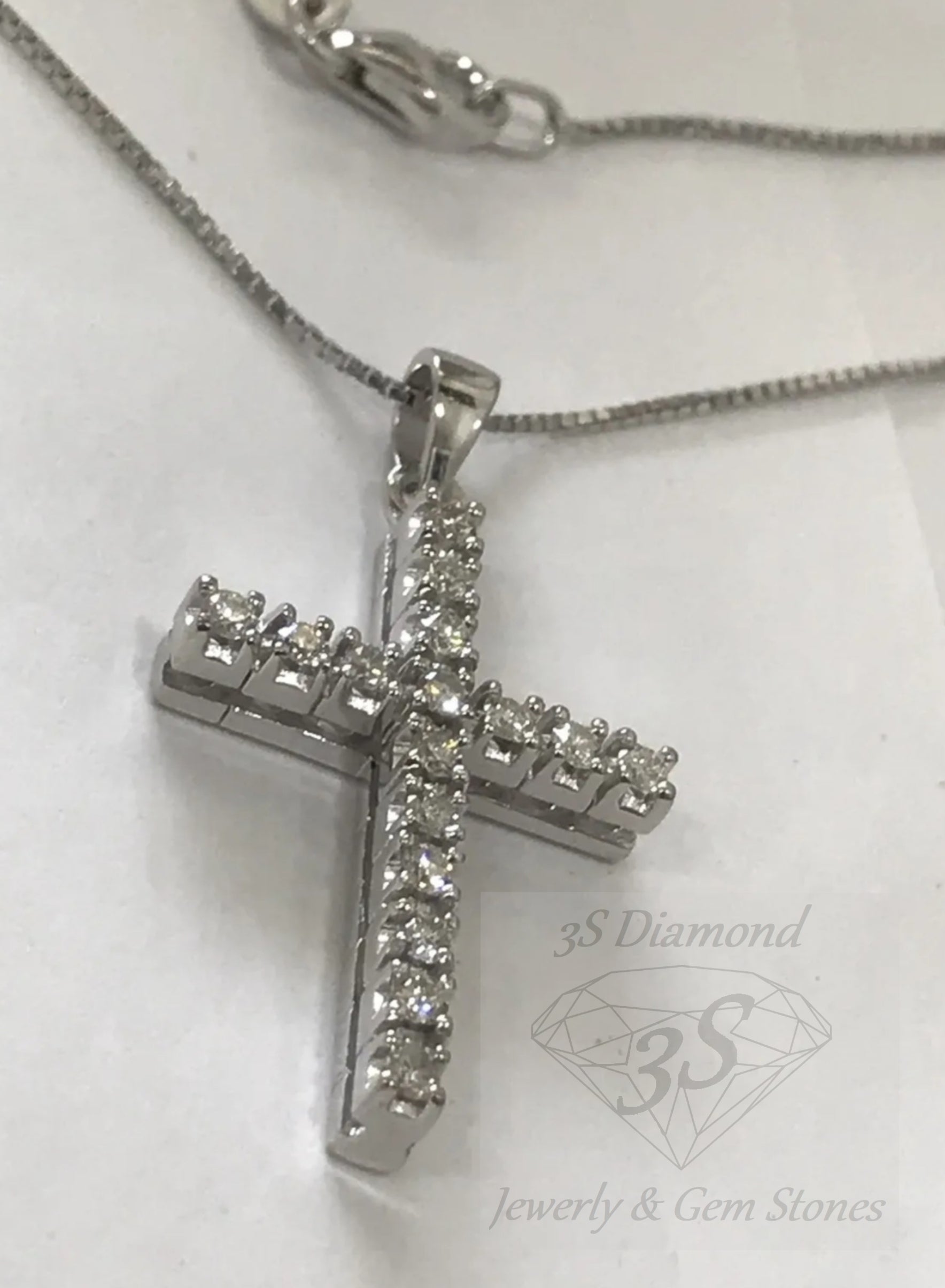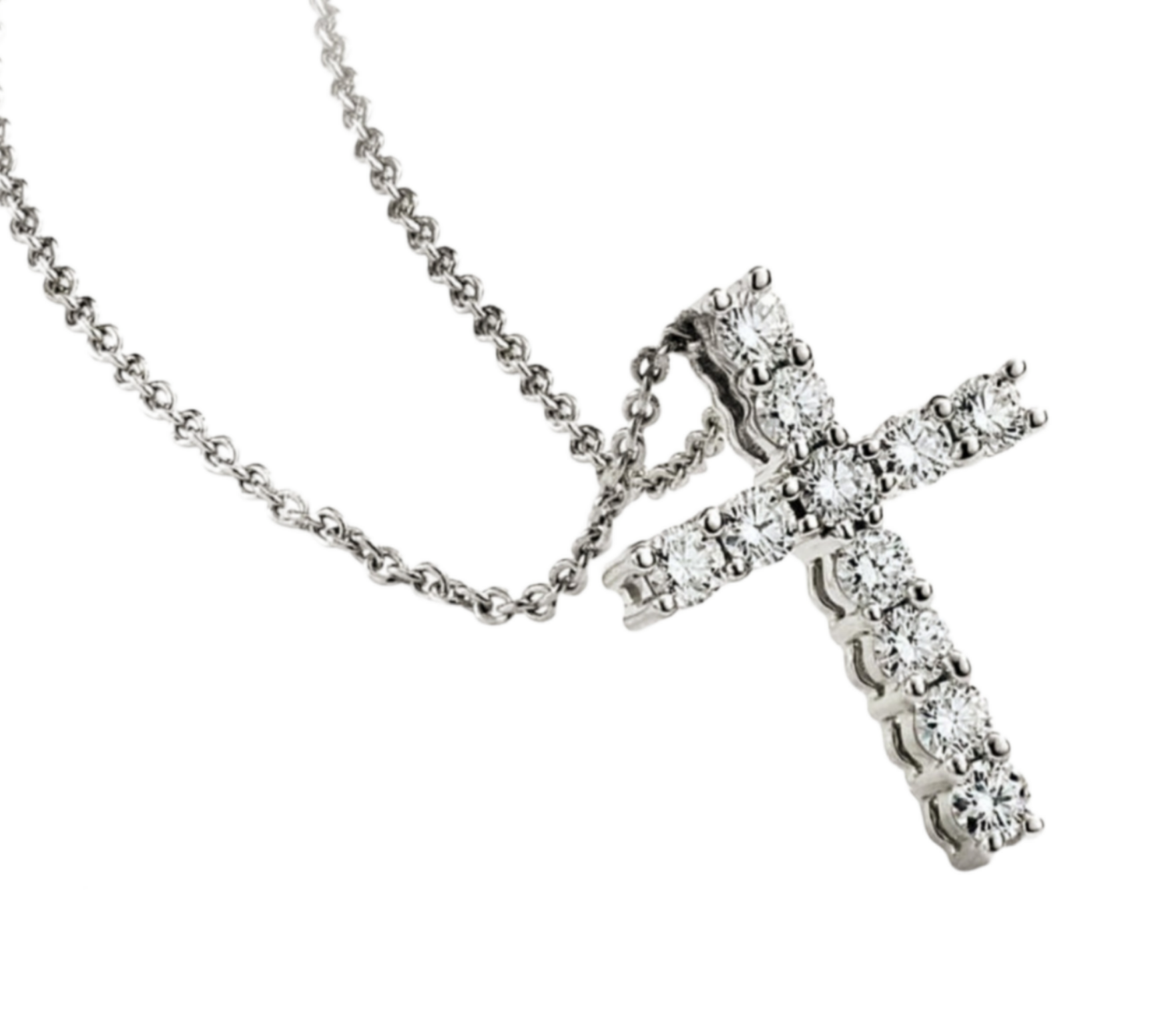 ciondolo croce in oro bianco 18k e 11 diamanti naturali 0,35 ct