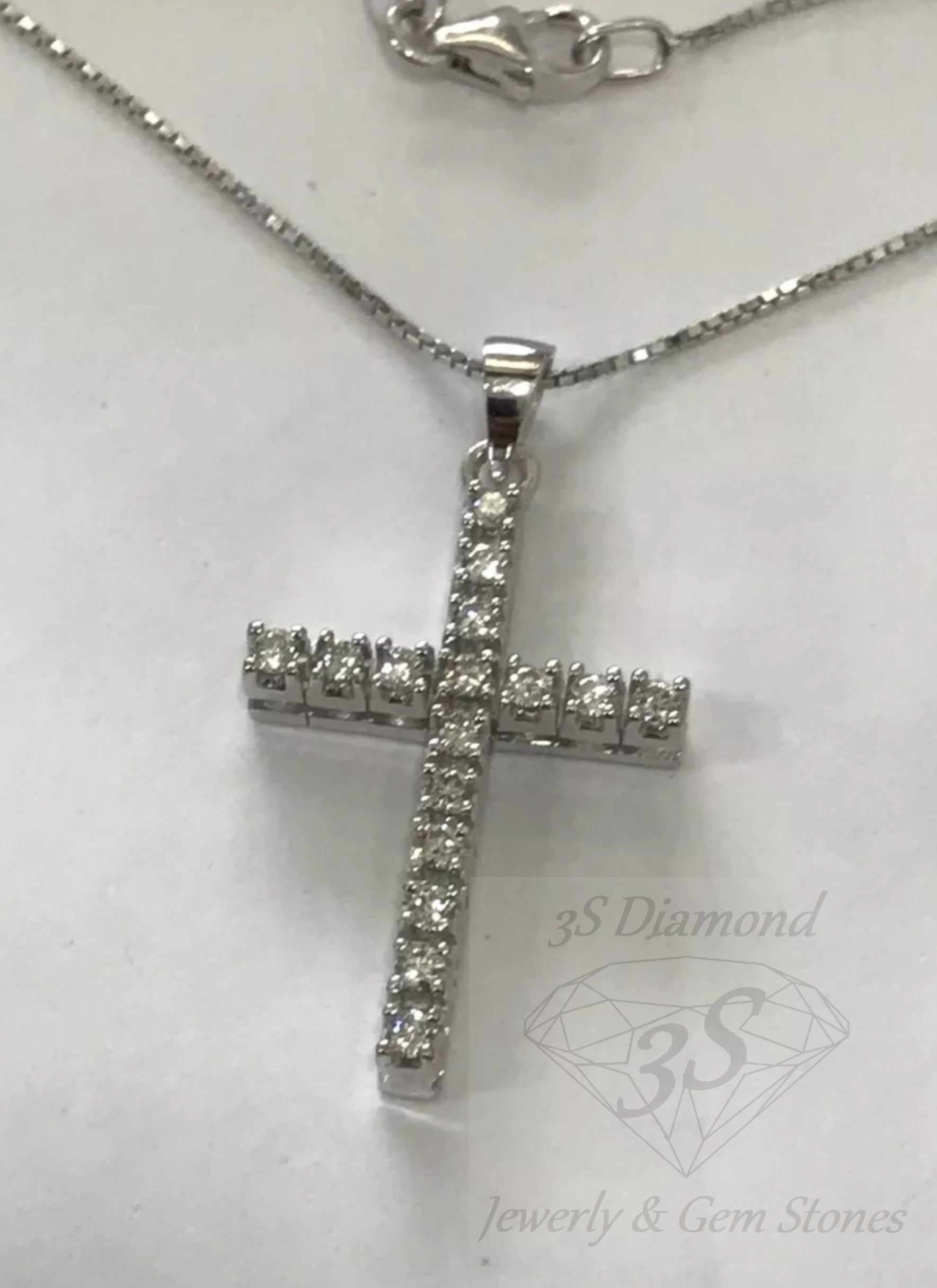 Questa collana è un gioiello classico da donna e da ragazza con ciondolo a forma di Croce con Diamanti, è un bellissimo gioiello da regalare in ogni occasione, anche come regalo prezioso per una prima Comunione o per la Cresima, è un bel regalo di compleanno e regalo di Natale. è una collana con ciondolo croce adatta ad un vasto pubblico femminile, perfetta sia com eregalo per una ragazza che per una donna adulta. è un gioiello molto luminoso e di un bell'effetto. il retro del ciondolo è a finitura liscia e lucida, in oro bianco