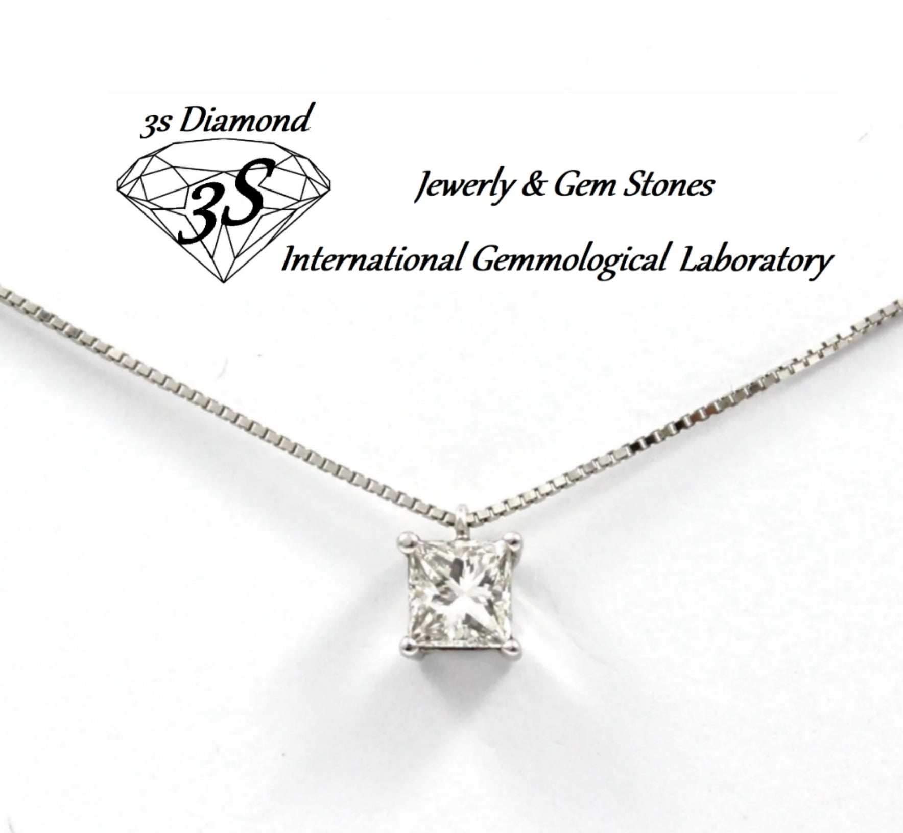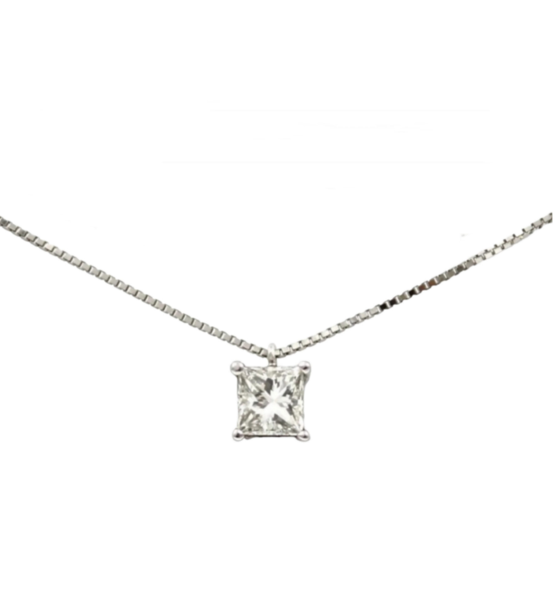 ciondolo punto luce in oro bianco e diamante naturale Taglio princess 0,25ct