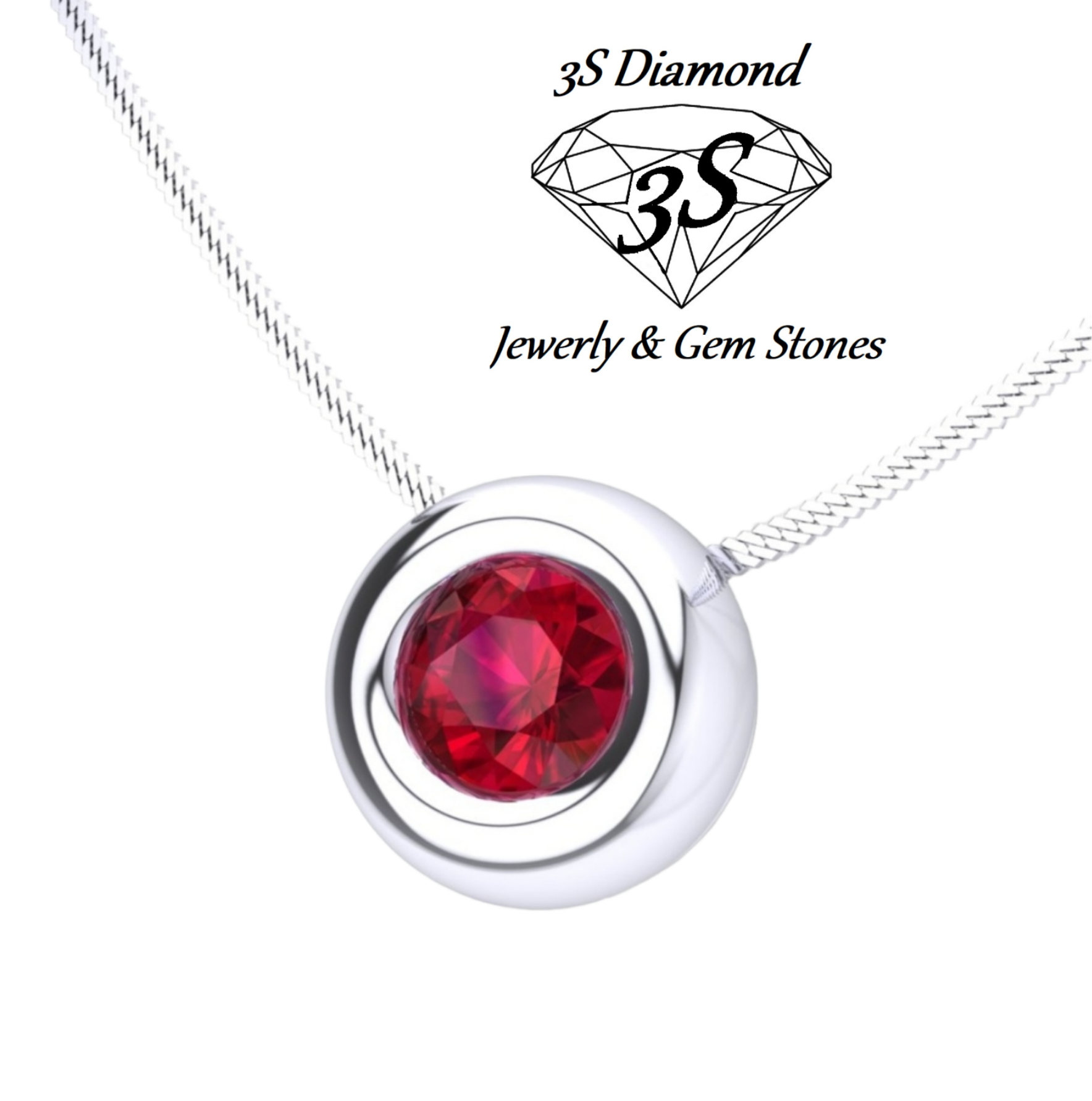 ciondolo punto luce a cipollina in oro bianco 18k e rubino naturale 0,30 ct