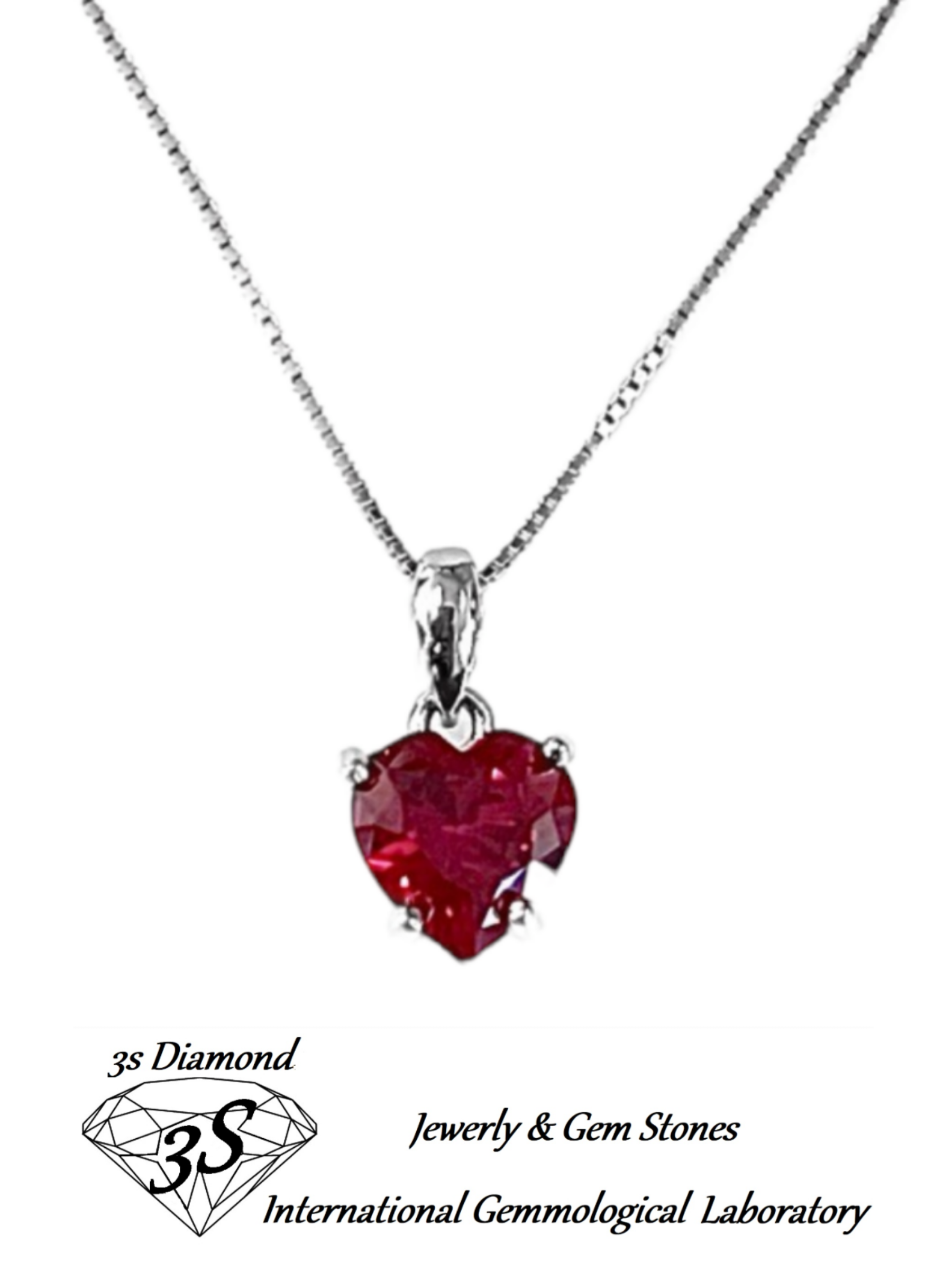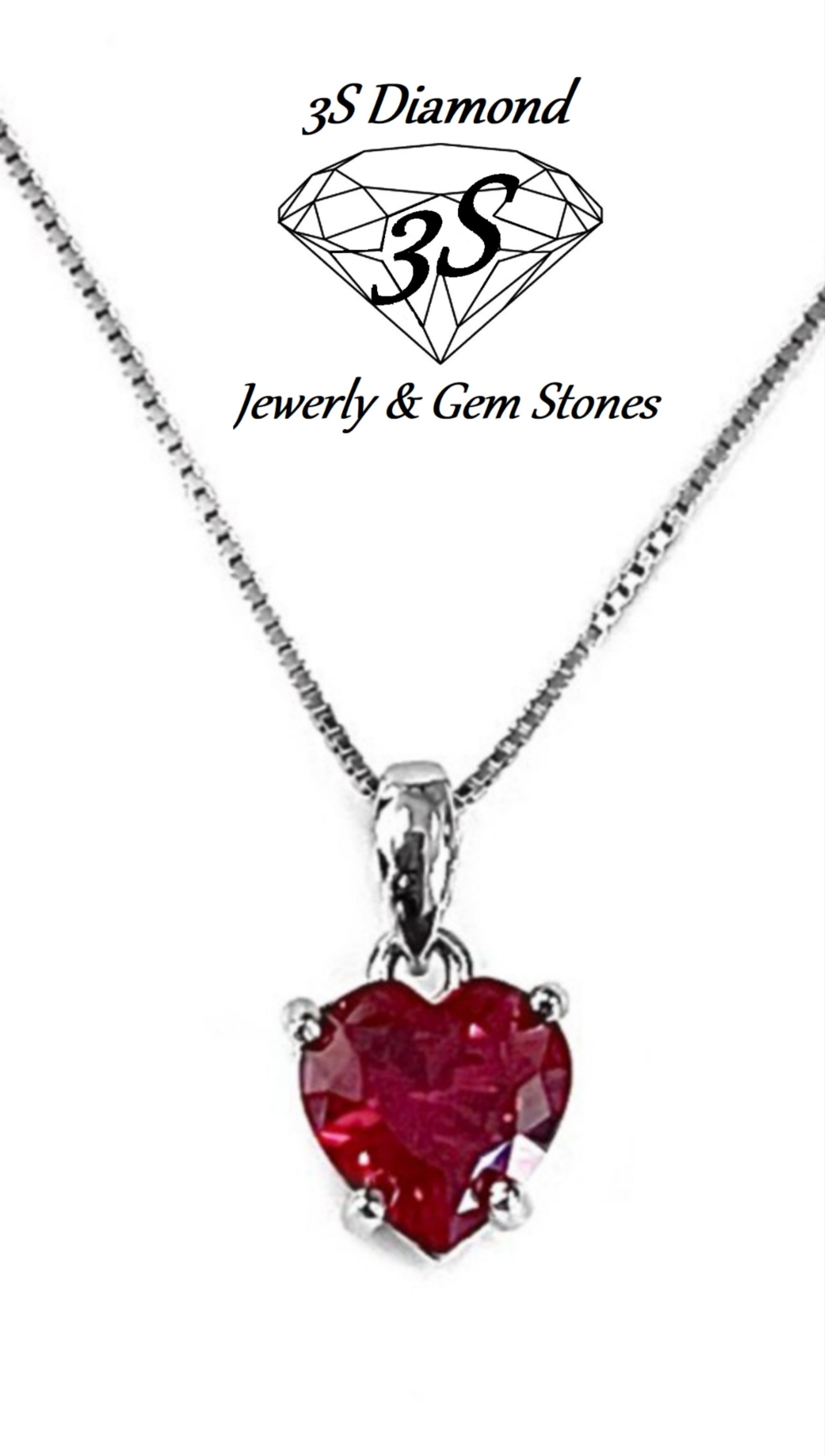 ciondolo punto luce in oro bianco 18k e rubino naturale taglio cuore 0,90ct