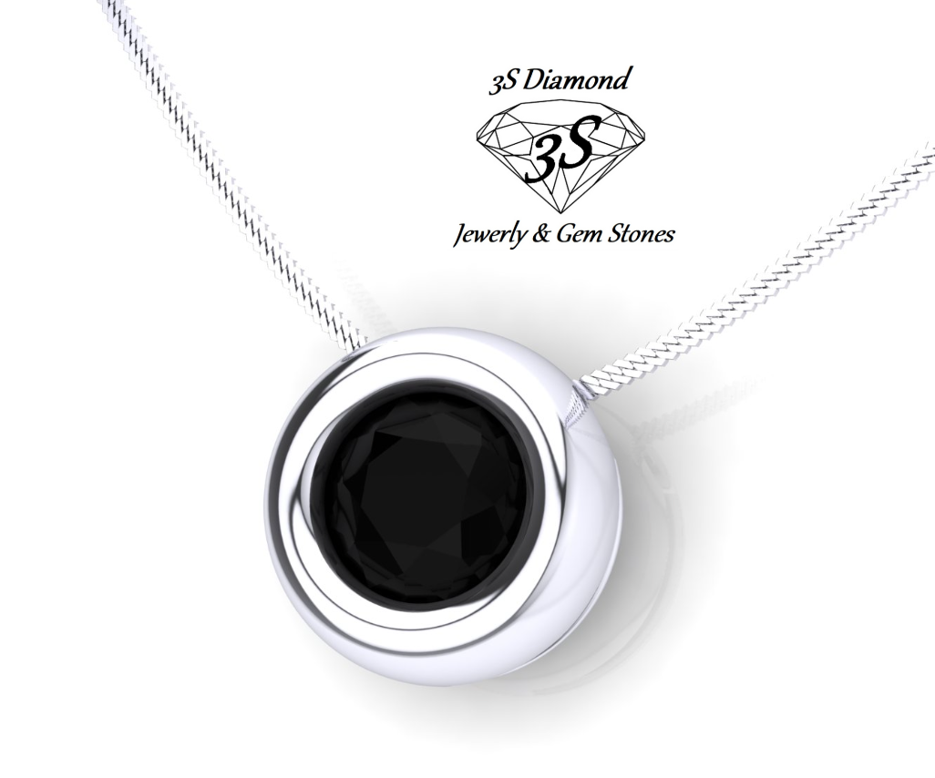 Ciondolo punto luce in oro bianco 18k con diamante naturale nero 0,50 ct