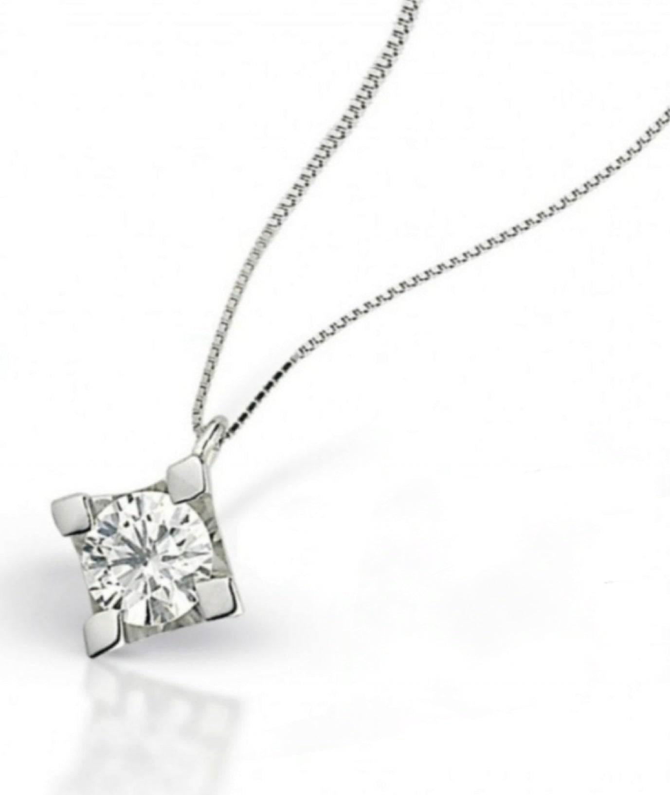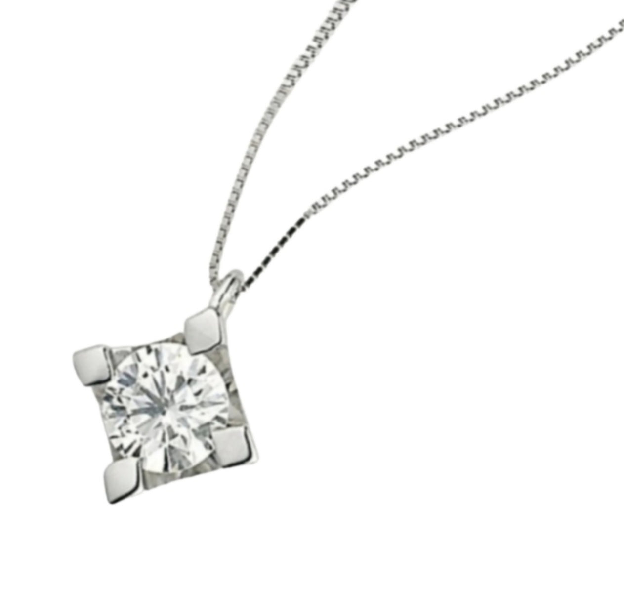ciondolo punto luce quadrato certificato IGI in oro bianco 18k e diamanti naturale 0,20ct