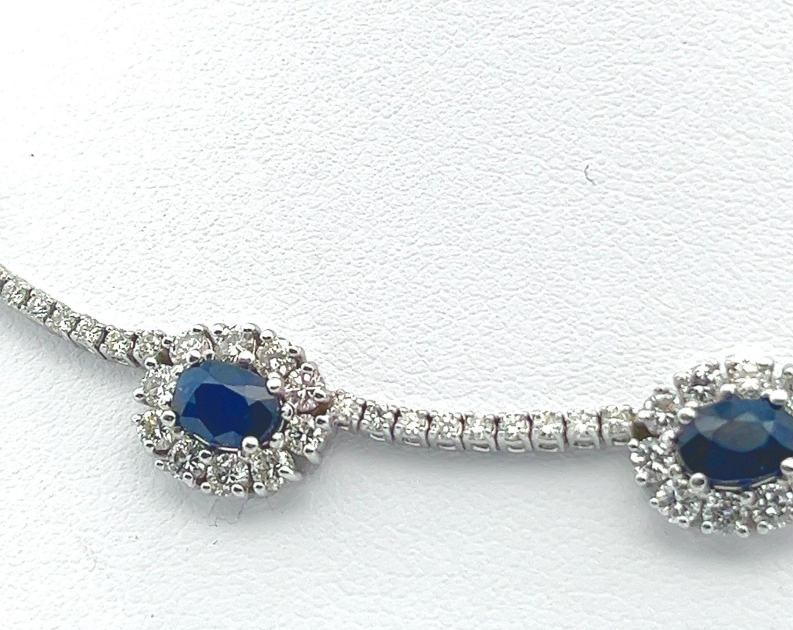 Collana collier tennis in oro bianco 18k e zaffiro e diamanti naturali 8ct