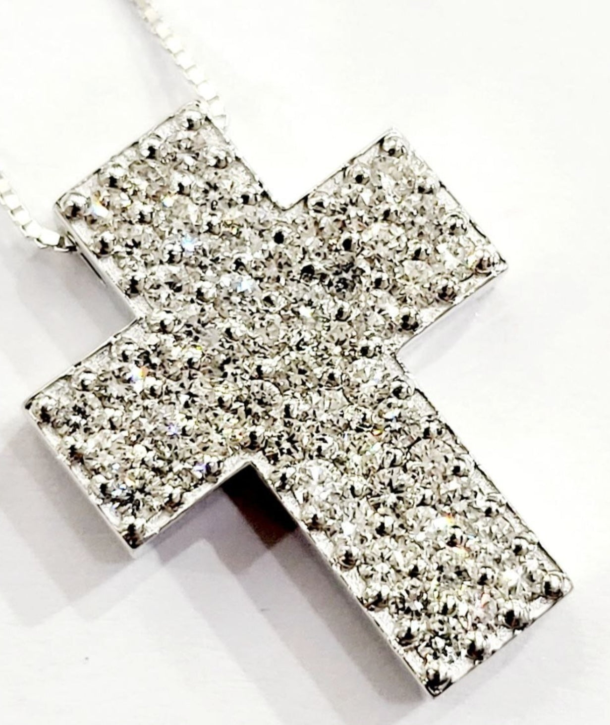 Collana con pendente Croce modello scatolato in pavè lavorato in Oro Bianco 18kt-750 - 4,51 Grammi