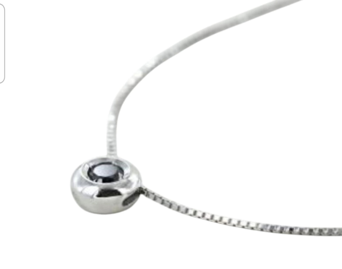 Collana con ciondolo pendente a forma di punto luce tornito con Diamante Taglio brillante ct 0,12 lavorato in oro bianco - 18kt 750/1000- Grammi 2,80
