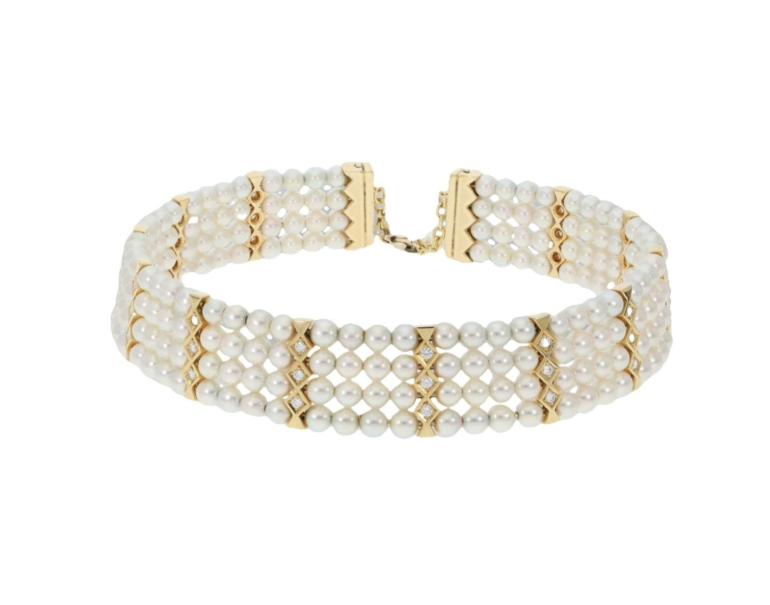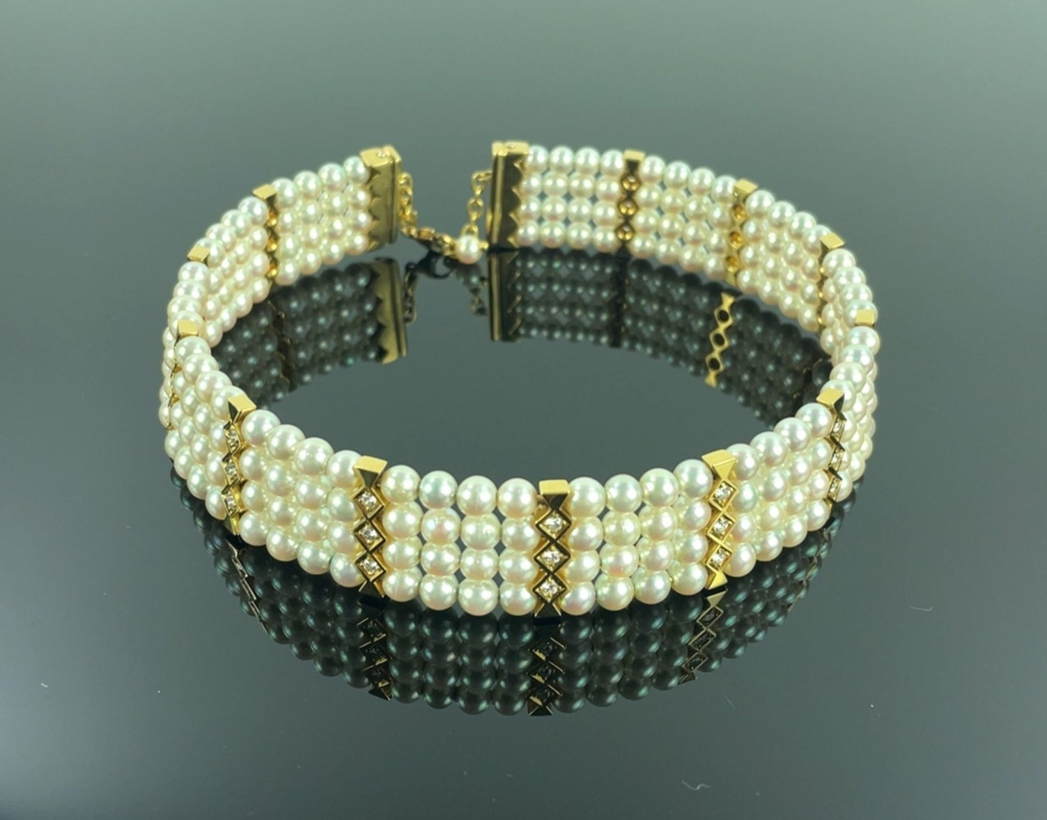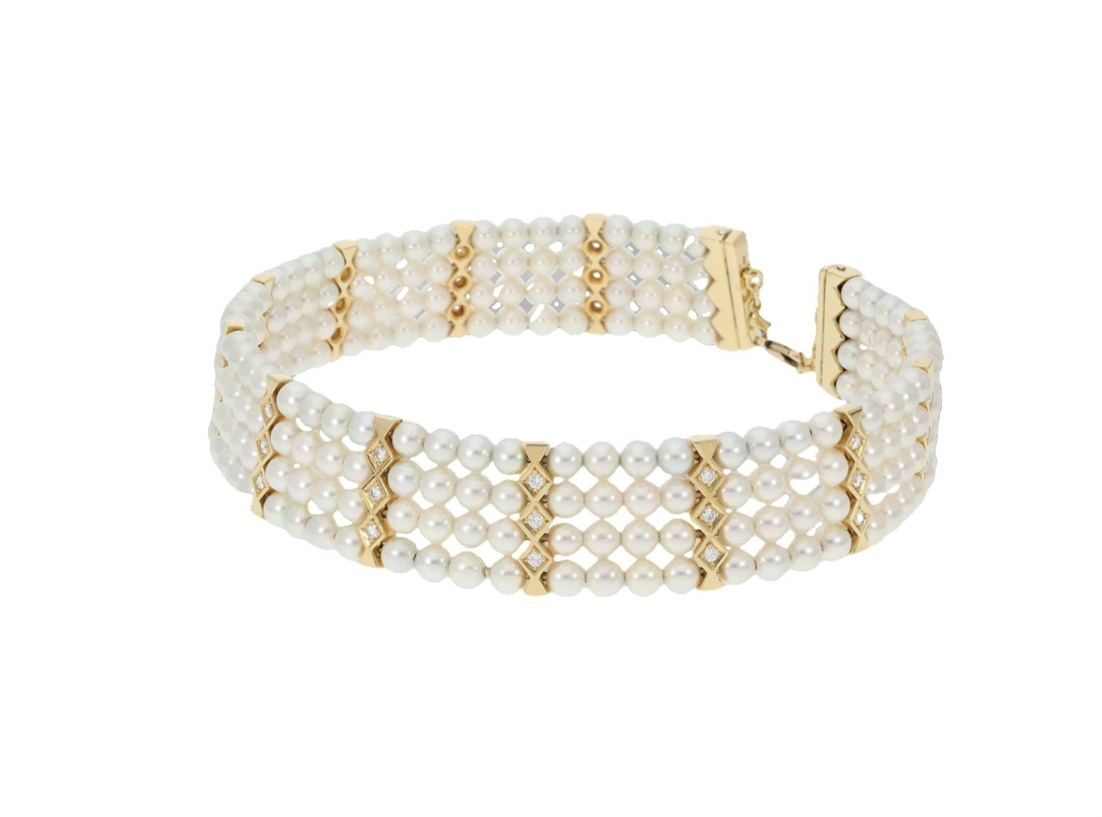 Lavoro di oreficeria preziosa realizzato da un gioielliere . nuovo. Un totale di 36 diamanti per un totale di 1,8 ct Top pulito con lente d'ingrandimento. Le perle sono infilate su filo d'oro 18 carati. Prezzo di produzione nel 25.000,- (adeguato all'inflazione nel 2025 circa €23.500).
