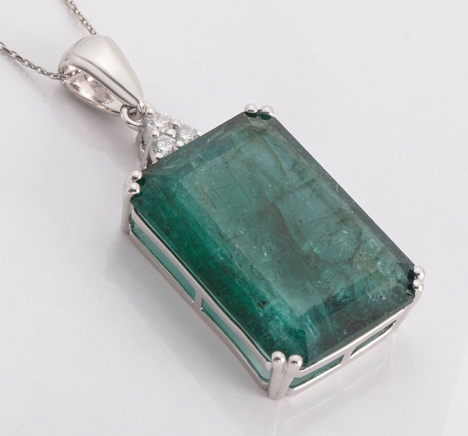 Collana in oro bianco 18k con smeraldo naturale colombiano 10.20ct