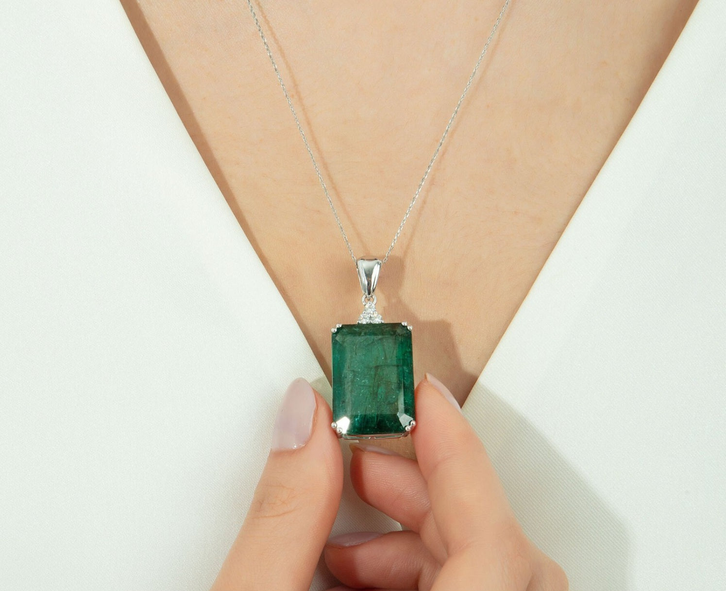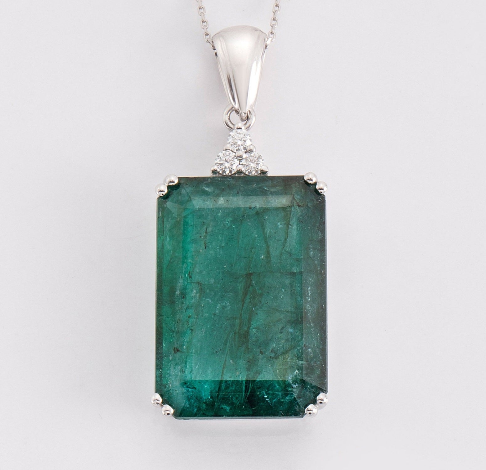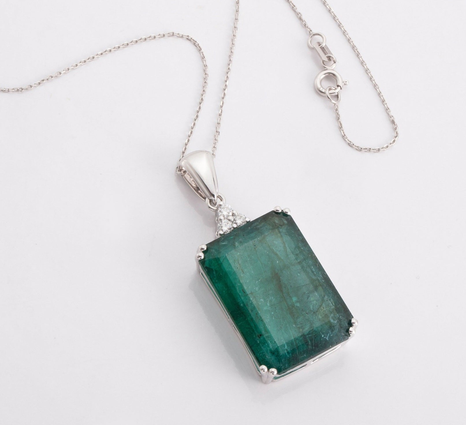 Collana in oro bianco 18k con smeraldo naturale colombiano 5.20ct