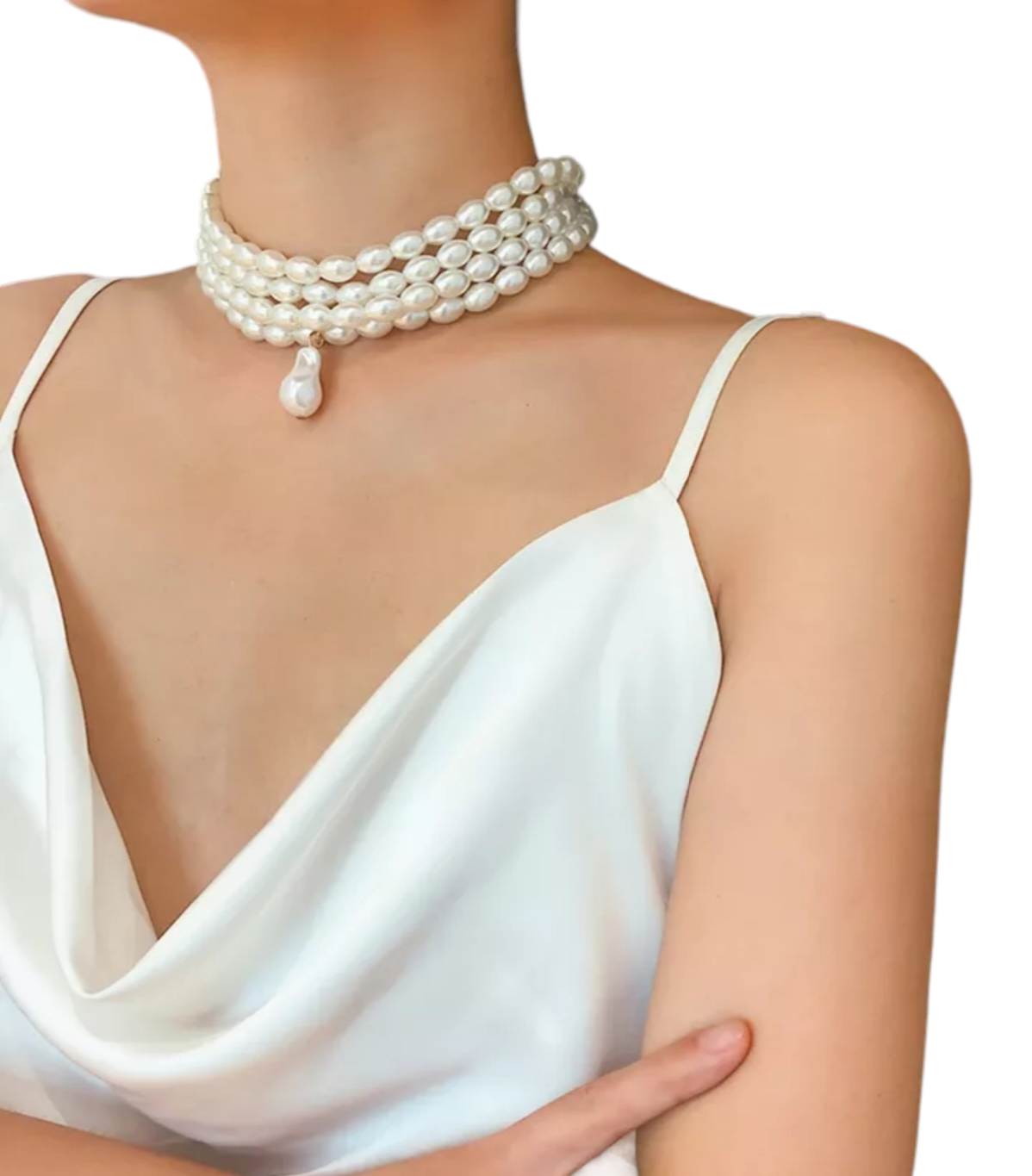 La collana di perle bianche naturali d'acqua dolce può essere indossata anche quotidianamente.