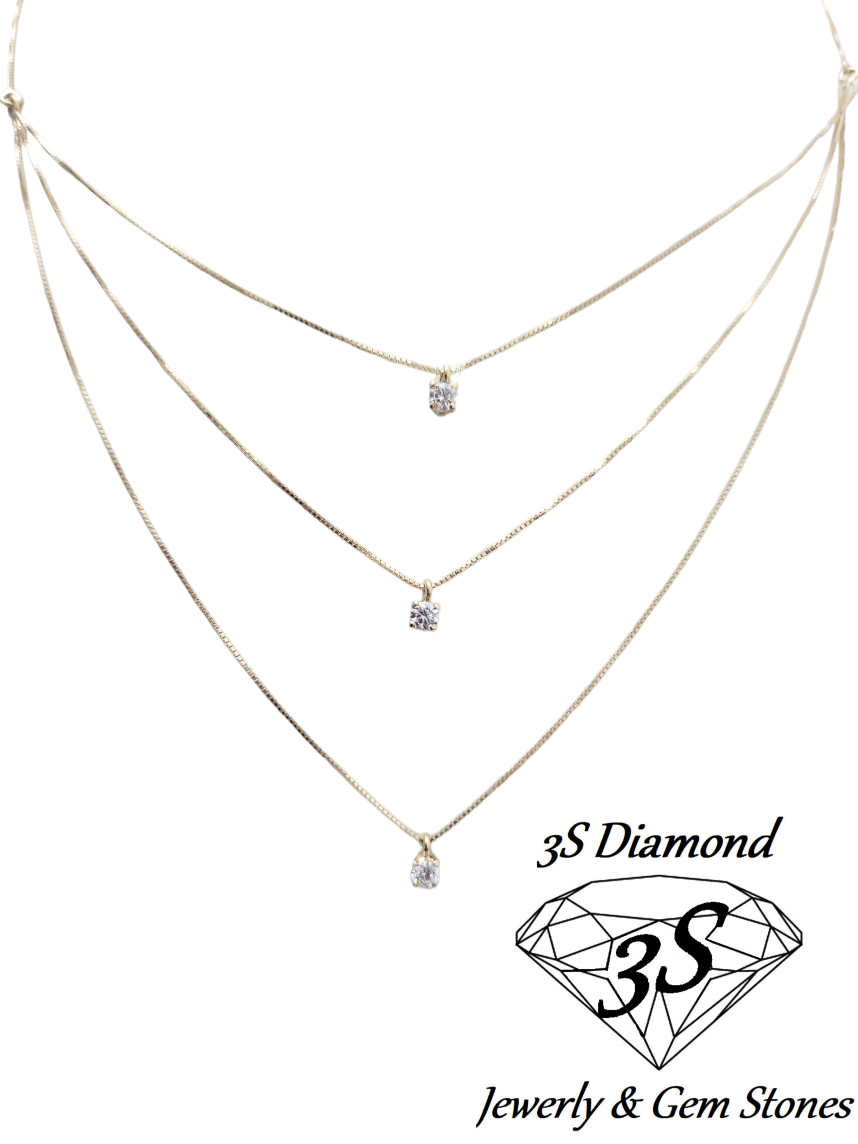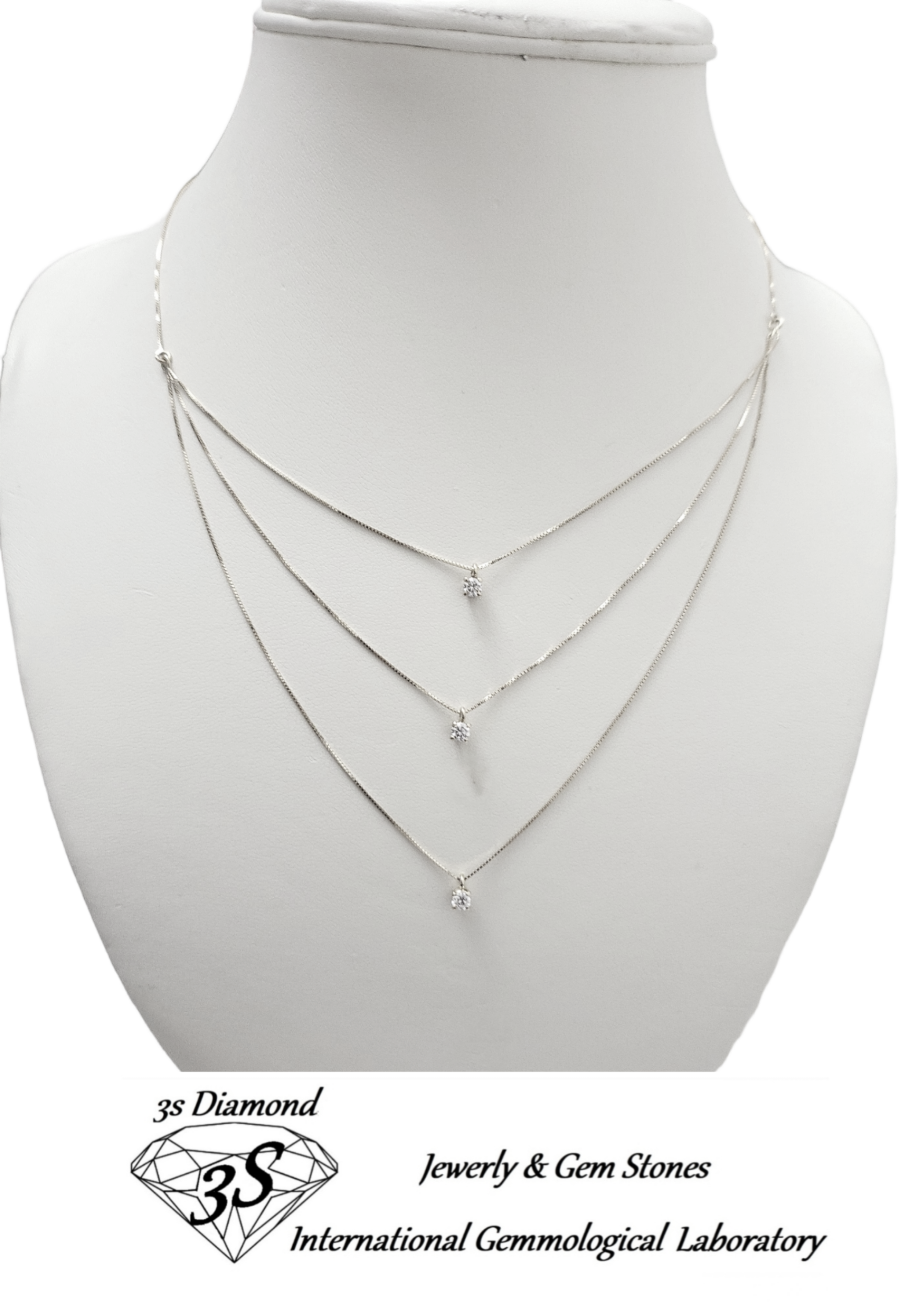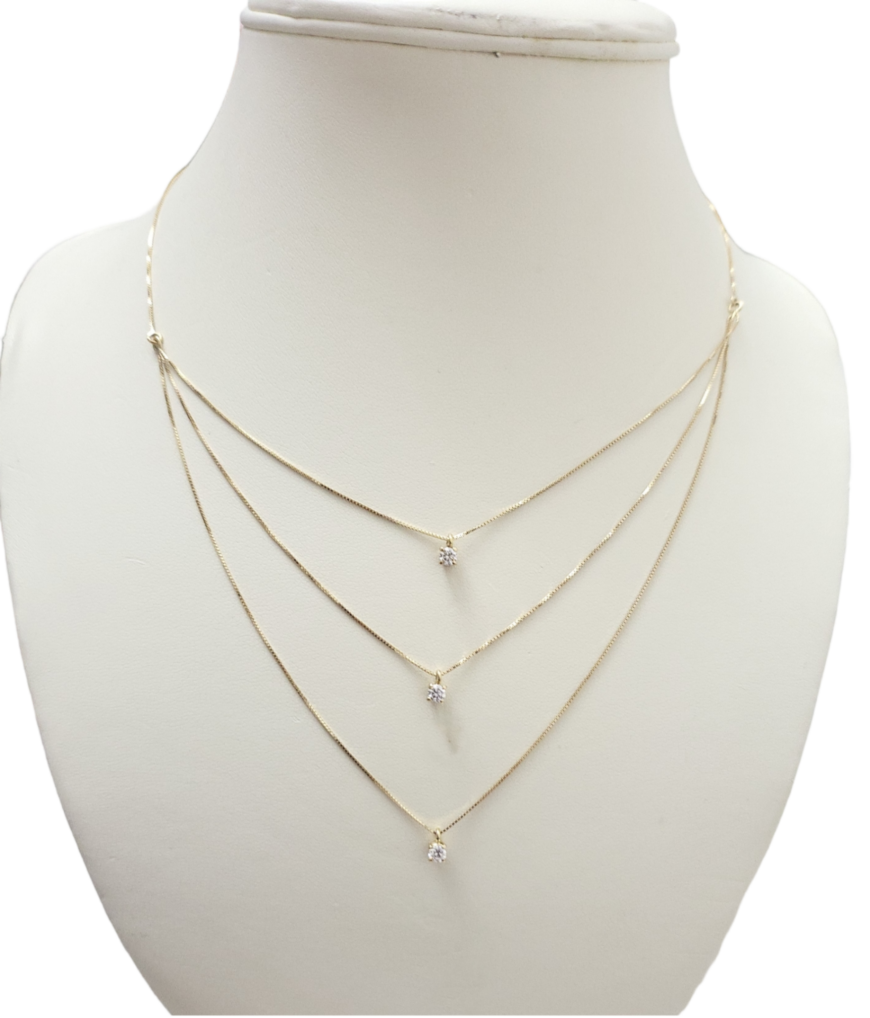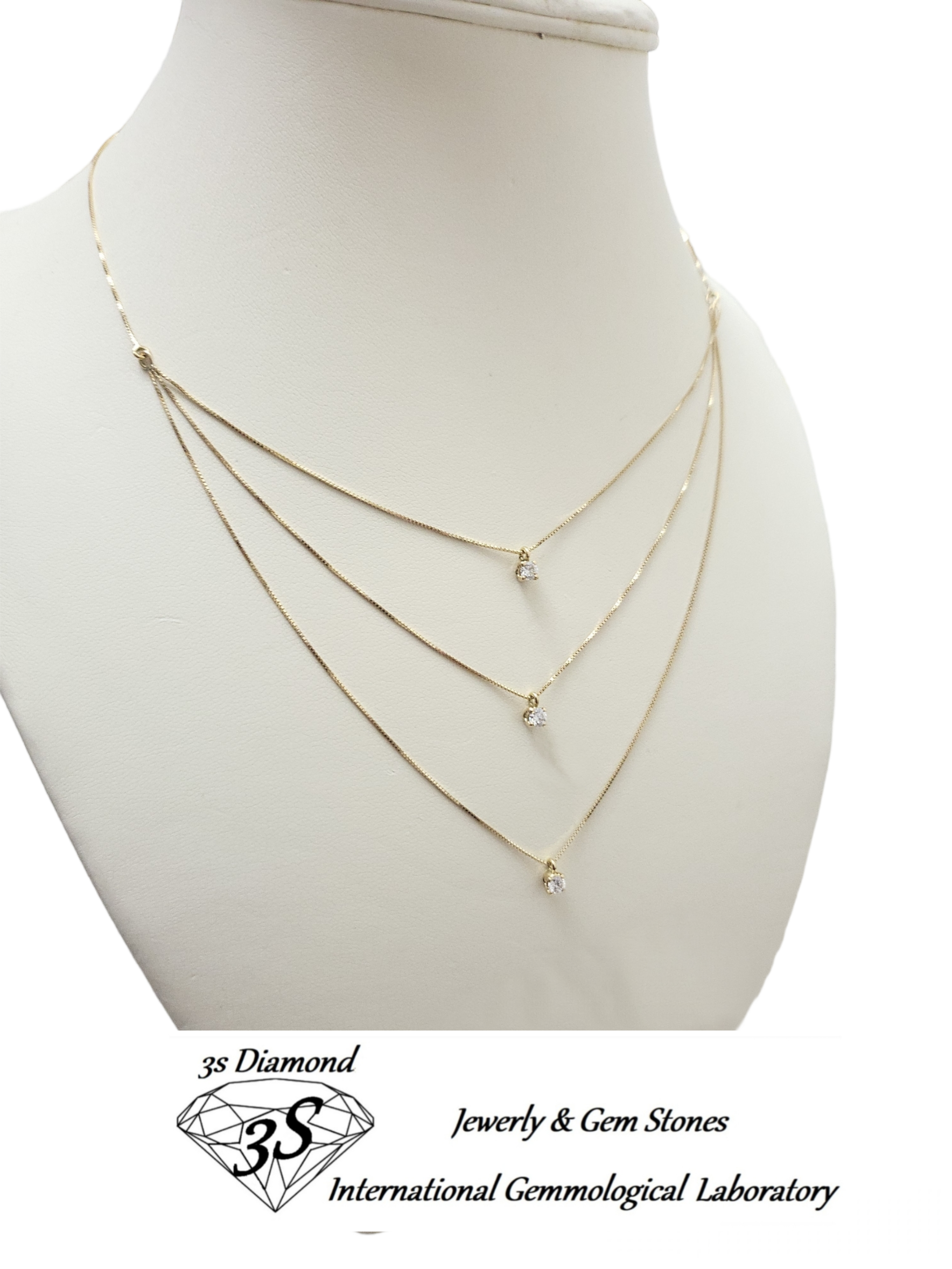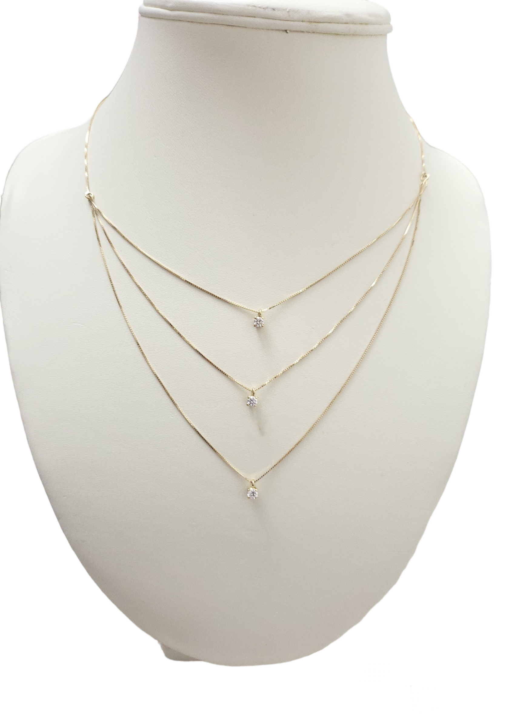 collana trilogy in oro giallo 18k e in 3 fila con 3 diamanti naturali 0,30ct