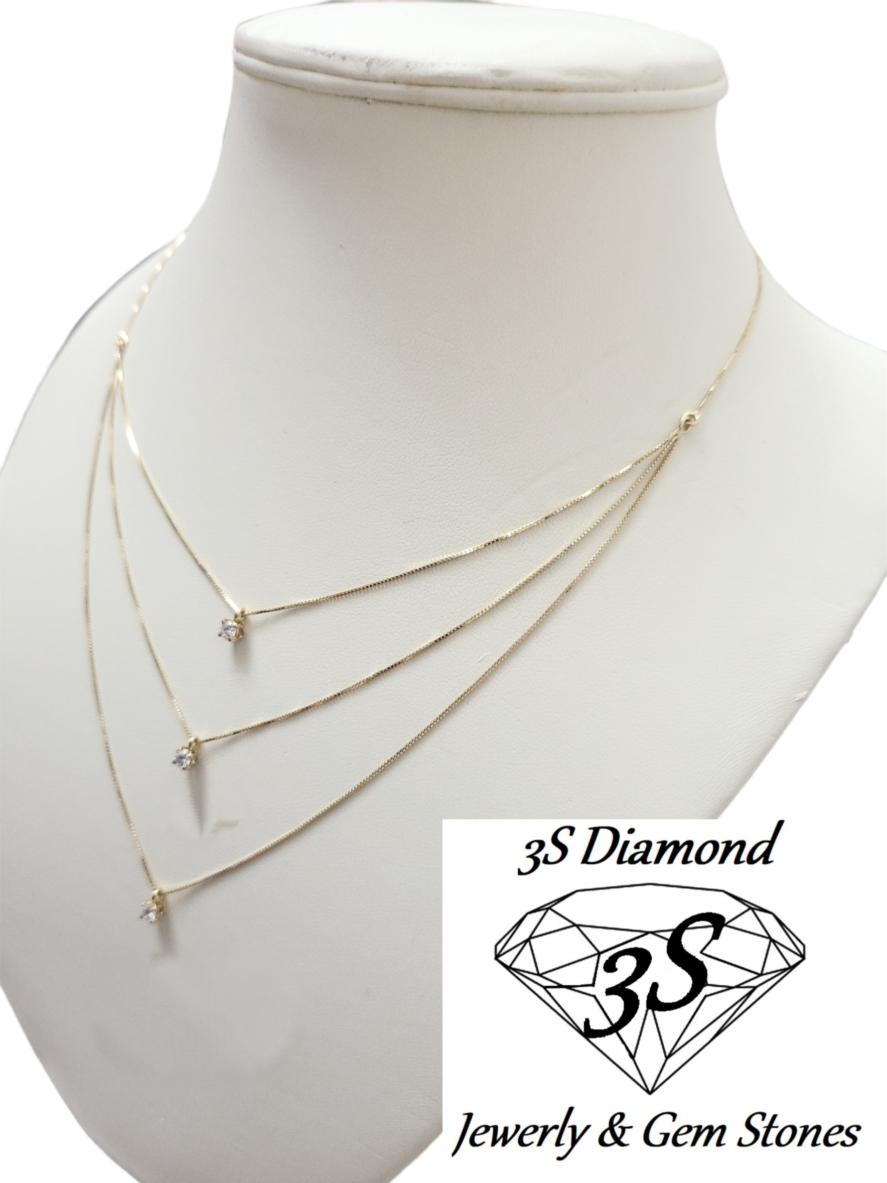 collana trilogy in oro giallo 18k e in 3 fila con 3 diamanti naturali 0,45ct
