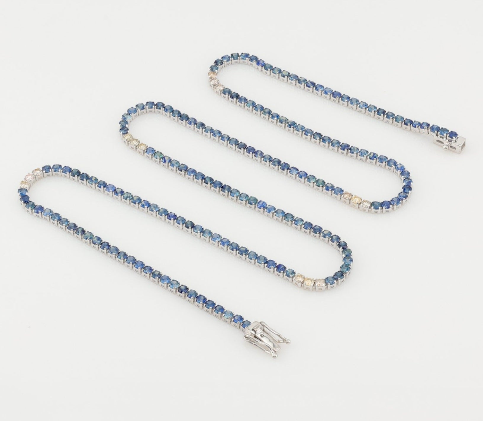 Collana - 18 carati Oro bianco - 10.16ct. tw. Zaffiro - Diamante naturale