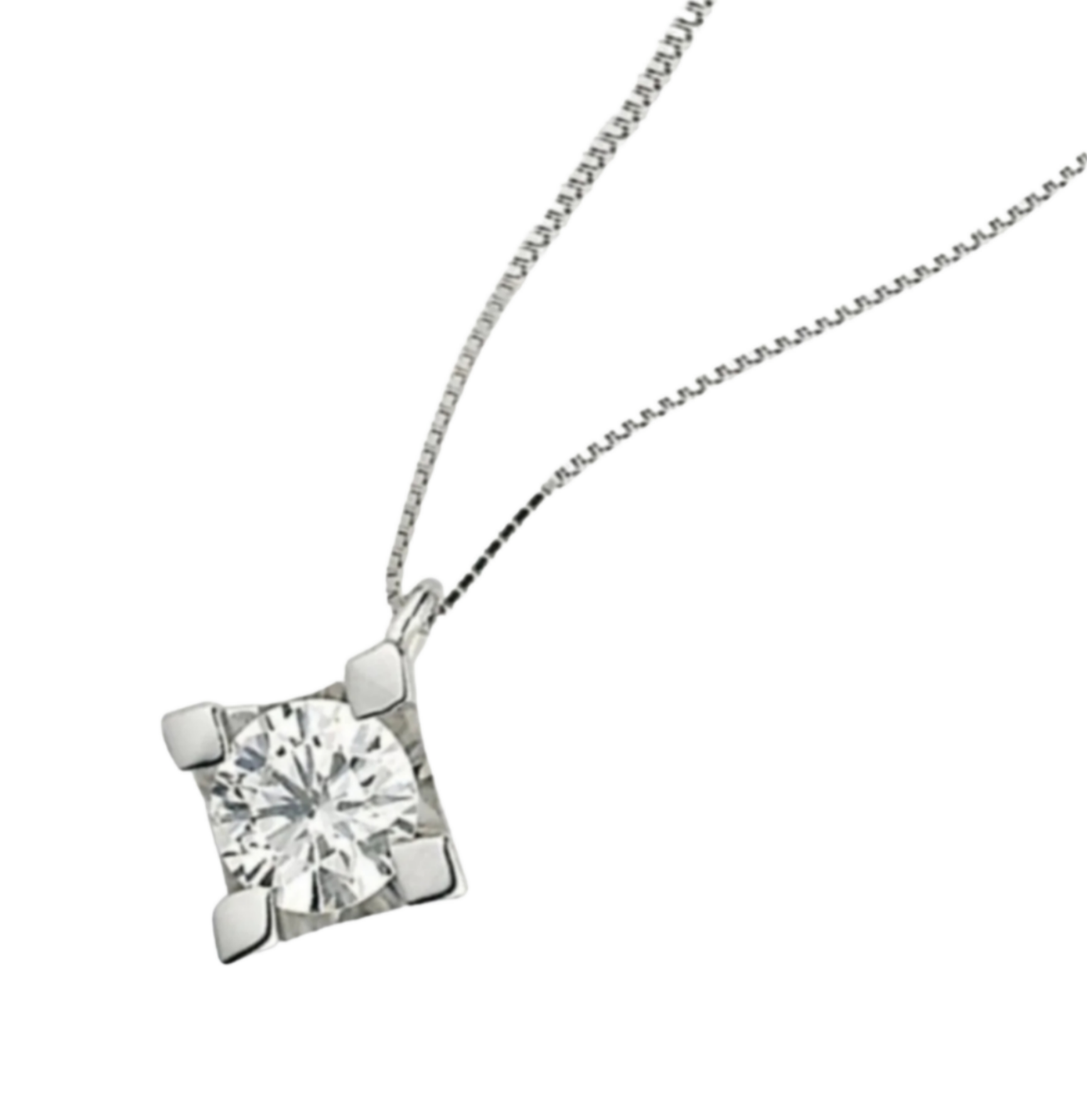 ciondolo punto luce quadrato in oro bianco 18k e diamanti naturale 0,25 ct