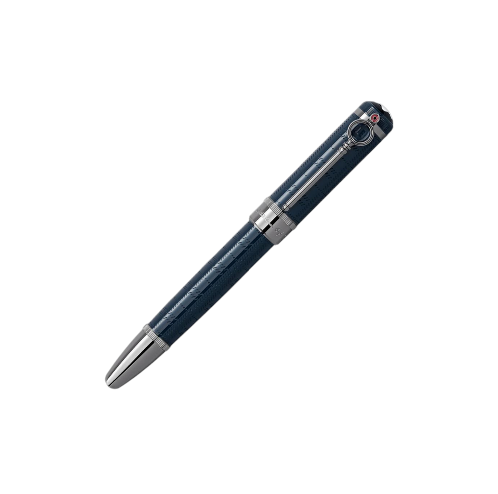 La Montblanc Writers Edition Homage to Sir Arthur Conan Doyle Edizione Limitata è dedicata a uno dei più celebri scrittori di romanzi gialli e creatore del famoso detective Sherlock Holmes. Realizzata in pregiata resina grigio-blu, l’edizione rievoca l’atmosfera sinistra e nebbiosa di Londra, dove Sherlock Holmes risolveva i suoi casi. Il corpo e il cappuccio di questa edizione sono decorati con un motivo scozzese che riprende il cappotto di Holmes e parte della storica mappa di Londra. Le iniziali JB si trovano sotto la clip a forma di lente di ingrandimento finitura PVD, omaggio a Joseph Bell: l’uomo che ha ispirato il personaggio di Sherlock Holmes. L’emblema Montblanc in pregiata resina troneggia sul cappuccio di questa edizione. Il pennino in oro massiccio Au 750 realizzato a mano presenta un’incisione con dinosauri volanti da “Il mondo perduto” intorno al ritratto del padre di “Professor Challenger” e “Sherlock Holmes