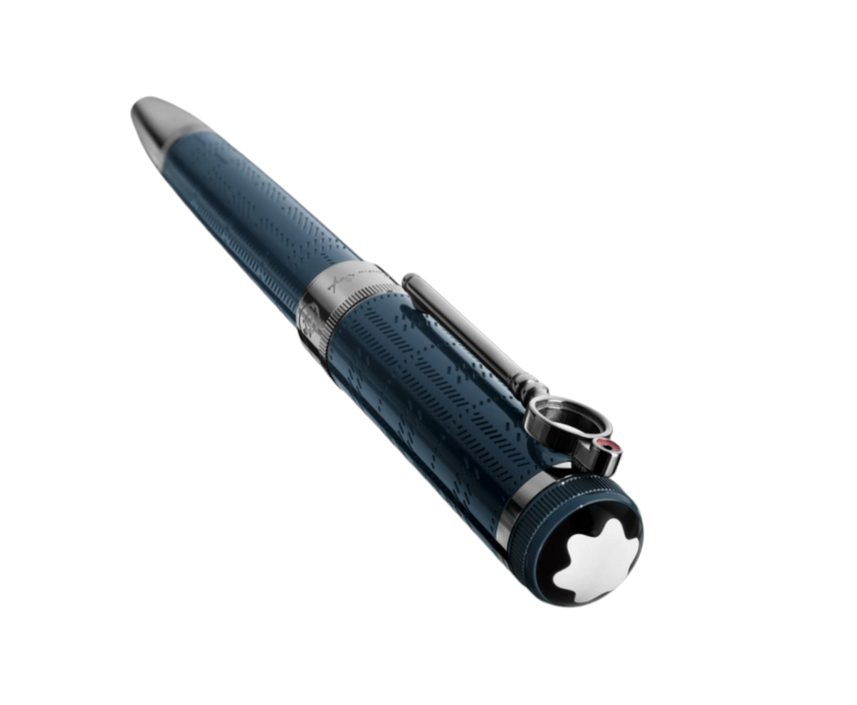 La Montblanc Writers Edition Homage to Sir Arthur Conan Doyle Edizione Limitata è dedicata a uno dei più celebri scrittori di romanzi gialli e creatore del famoso detective Sherlock Holmes. Realizzata in pregiata resina grigio-blu, l’edizione rievoca l’atmosfera sinistra e nebbiosa di Londra, dove Sherlock Holmes risolveva i suoi casi. Il corpo e il cappuccio di questa edizione sono decorati con un motivo scozzese che riprende il cappotto di Holmes e parte della storica mappa di Londra. Le iniziali JB si trovano sotto la clip a forma di lente di ingrandimento finitura PVD, omaggio a Joseph Bell: l’uomo che ha ispirato il personaggio di Sherlock Holmes. L’emblema Montblanc in pregiata resina troneggia sul cappuccio di questa edizione. Il pennino in oro massiccio Au 750 realizzato a mano presenta un’incisione con dinosauri volanti da “Il mondo perduto” intorno al ritratto del padre di “Professor Challenger” e “Sherlock Holmes