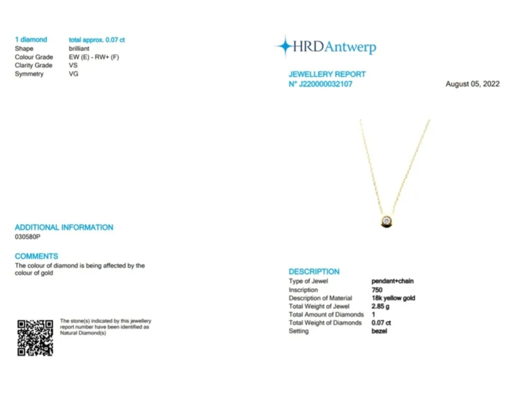 Gioiello collana punto luce a cipollina piccola interamente realizzata in Italia, corredata da scatola e certificato di autenticità riportante documentazione fotografica del gioiello e le caratteristiche dell'oro e del diamante