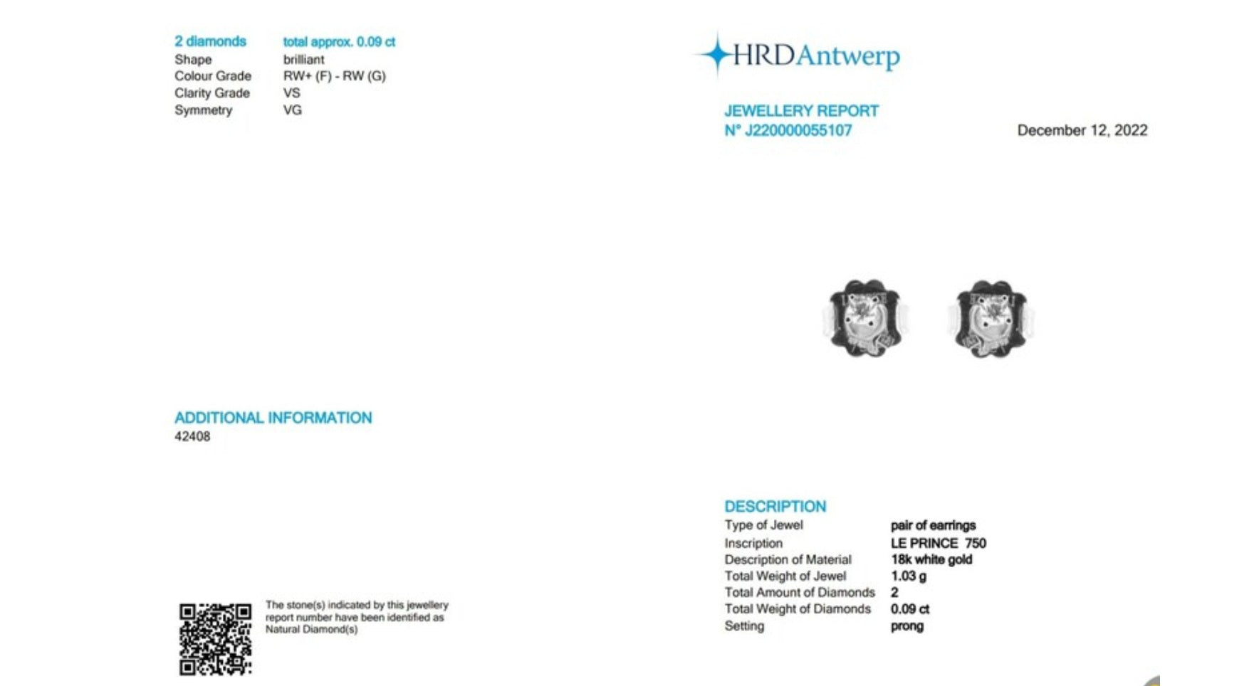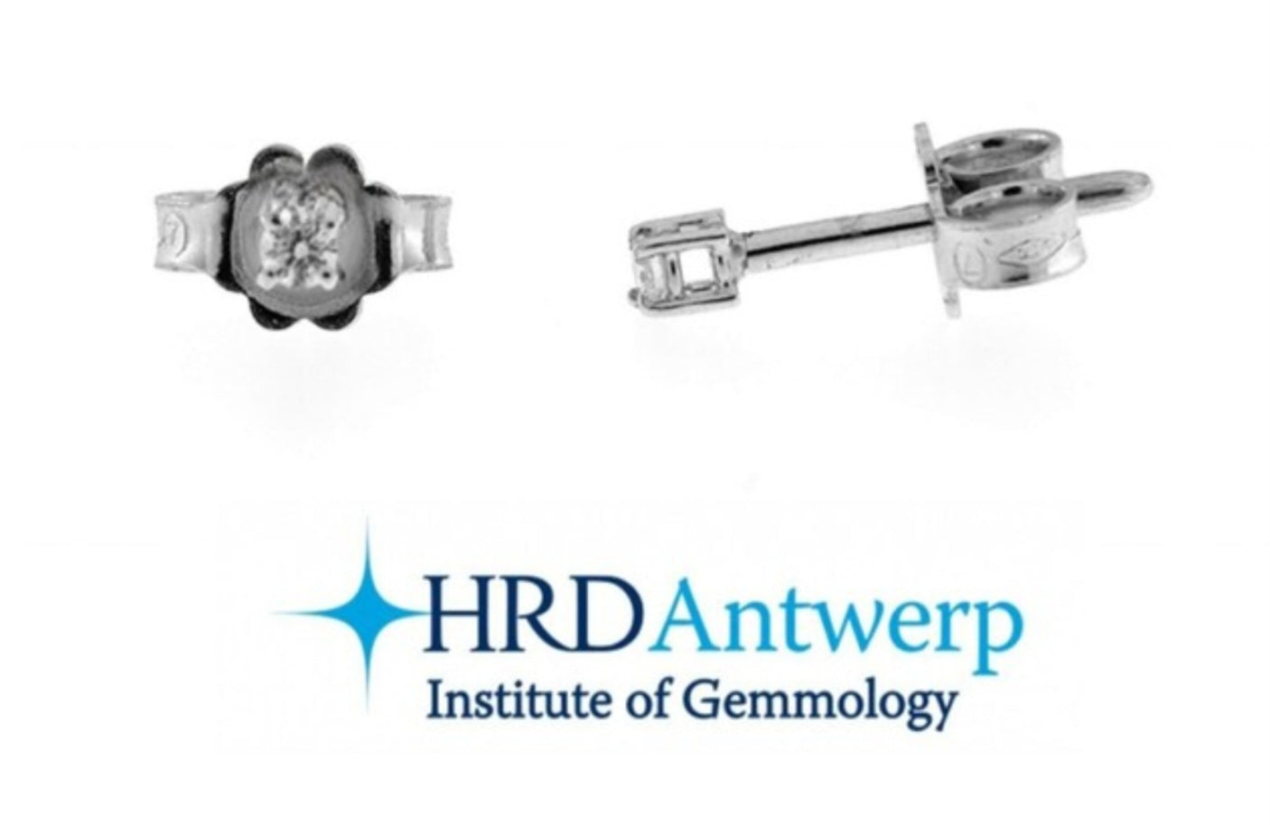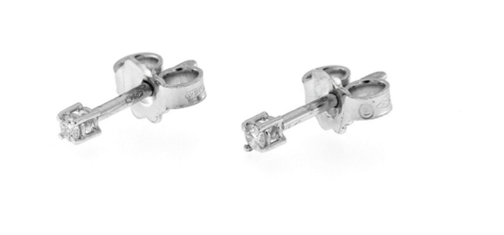 orecchini punto luce certificato HRD in oro bianco 18k e 2 diamanti naturali 0,09ct