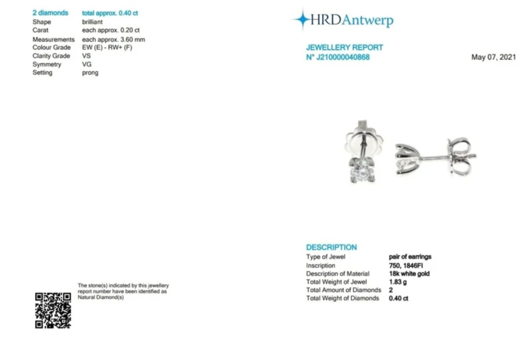 orecchini punto luce certificato HRD in oro bianco 18k e 2 diamanti naturali 0,40 ct
