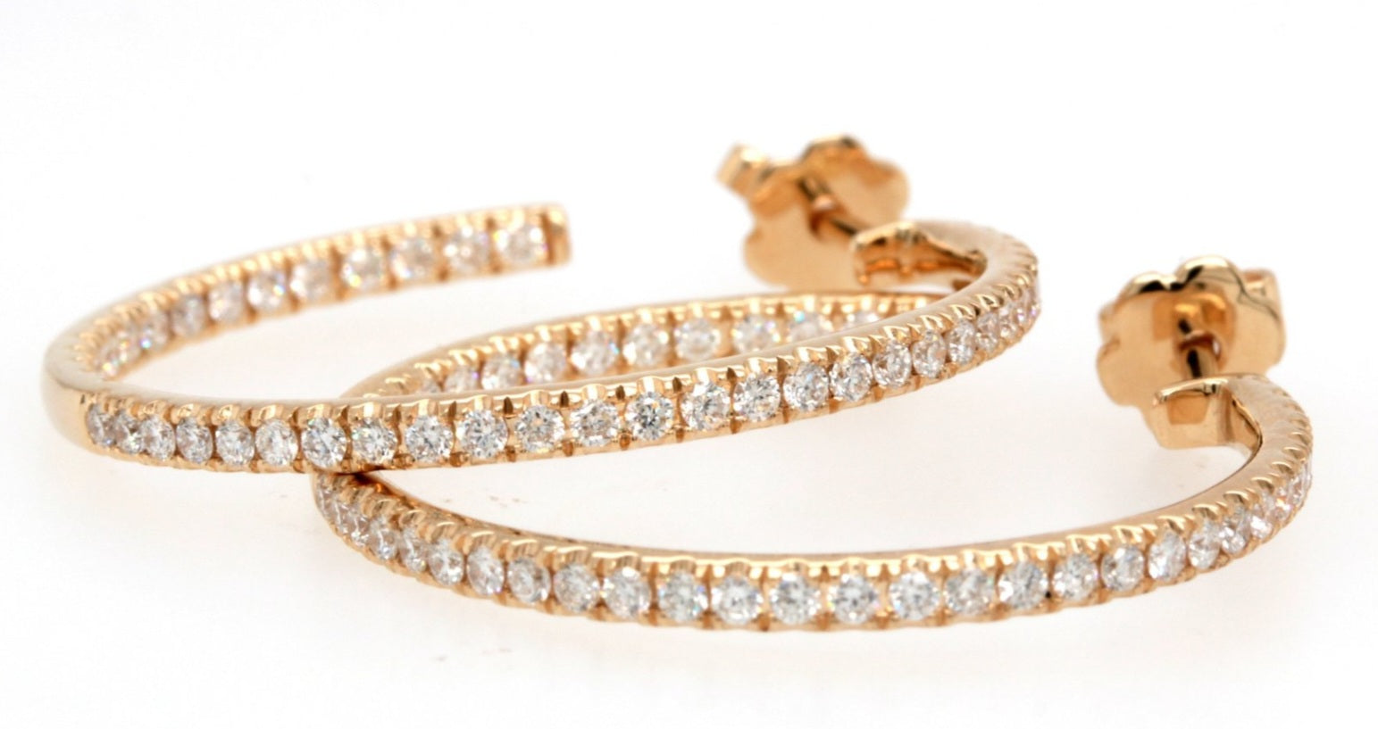 Orecchini modello semicerchio con diamanti bianchi naturali taglio brillante 1.10 ct lavorati in oro bianco 18 kt (750%)
